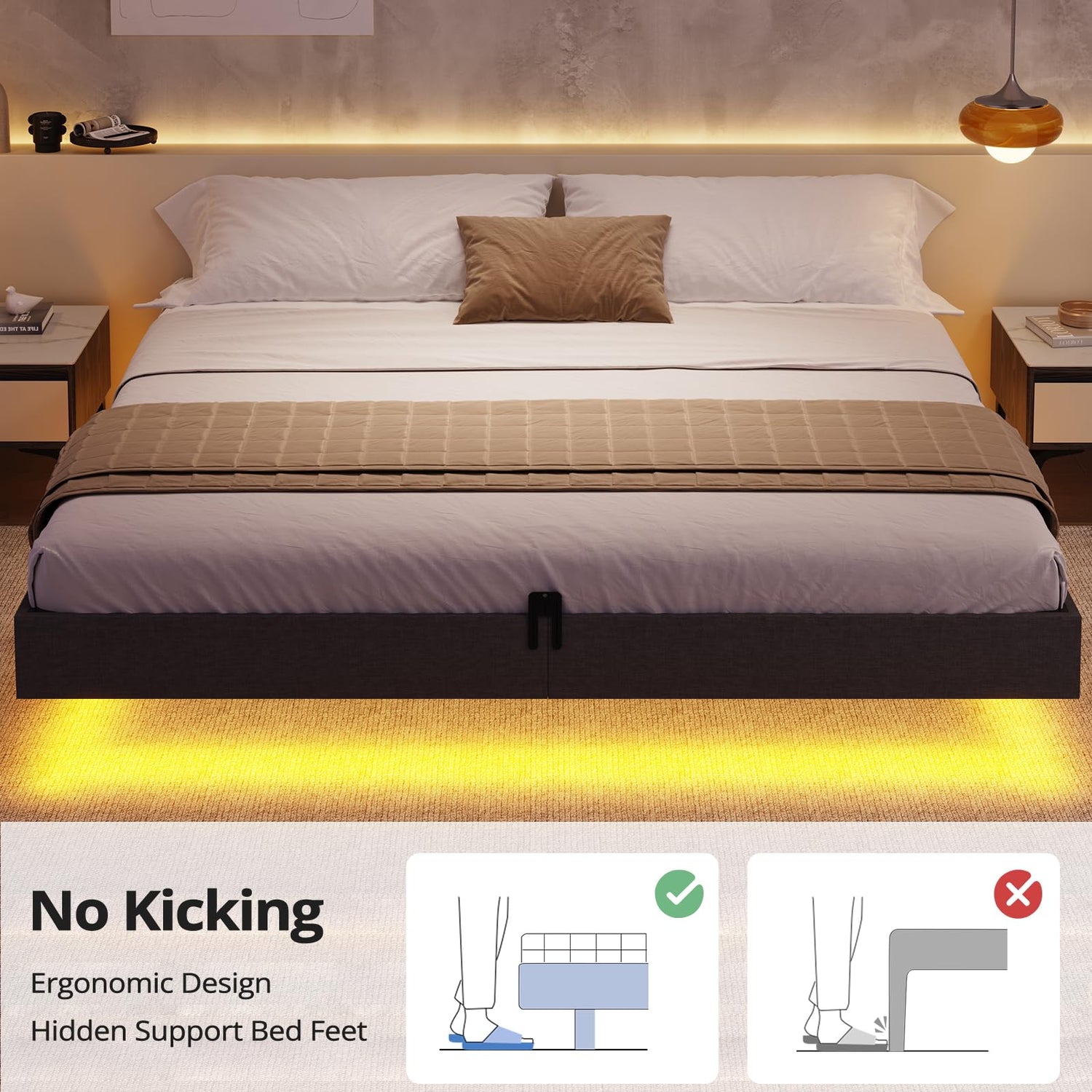 BTHFST King Size Floating Bed Frame with LED Lights – Modern Metal Platform Design