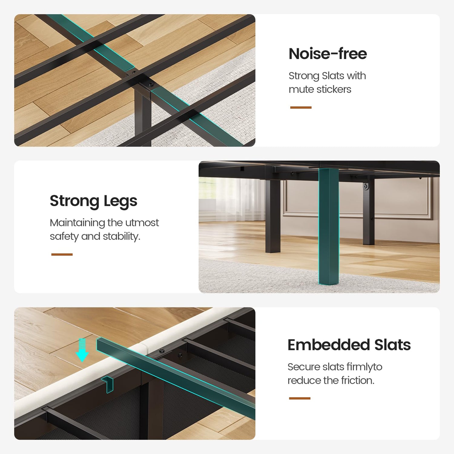 - Sturdy Structure & No-noise Design: This platform bed features heavy duty base and strong metal slats supports, support up to 1,000 lbs. Sturdy structure and premium fabric ensuring long-lasting durability and stability. EVA foam help prevent noises and give you slience sleeping enviroments. No need box spring and recommended Mattress: 8"-12".
