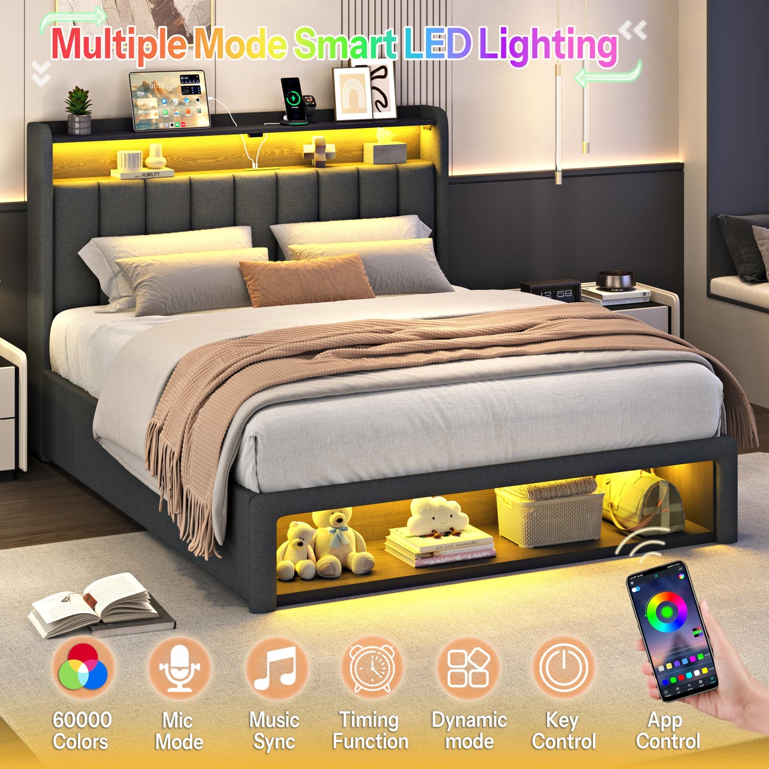 • Smart RGB LED Lighting for Brilliant Ambiance: Transform your bedroom with integrated RGB LED light strips built into the headboard and footboard storage. Effortlessly adjust color, brightness, and lighting modes using the mobile app or built-in controls—including a key for added convenience. Whether you're winding down for the night or setting a vibrant vibe, this ambient lighting brings both comfort and style to your space