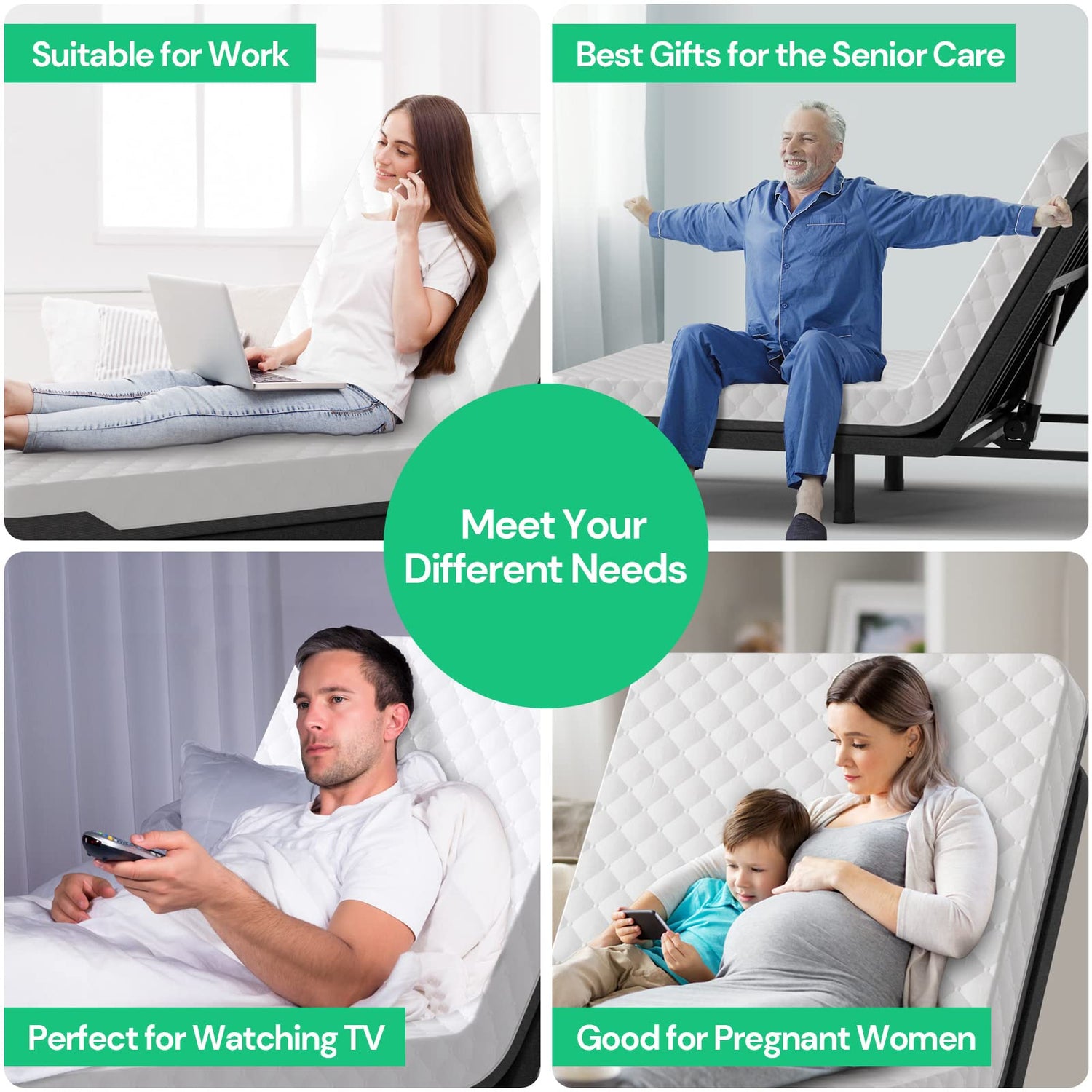• Compatible with Mattresses Up to 14 Inches: This adjustable bed frame accommodates mattresses up to 14 inches thick, offering versatility for various mattress types. Note: Mattress not included. Perfect for elderly users, individuals with disabilities, or anyone seeking a customizable sleep experience
