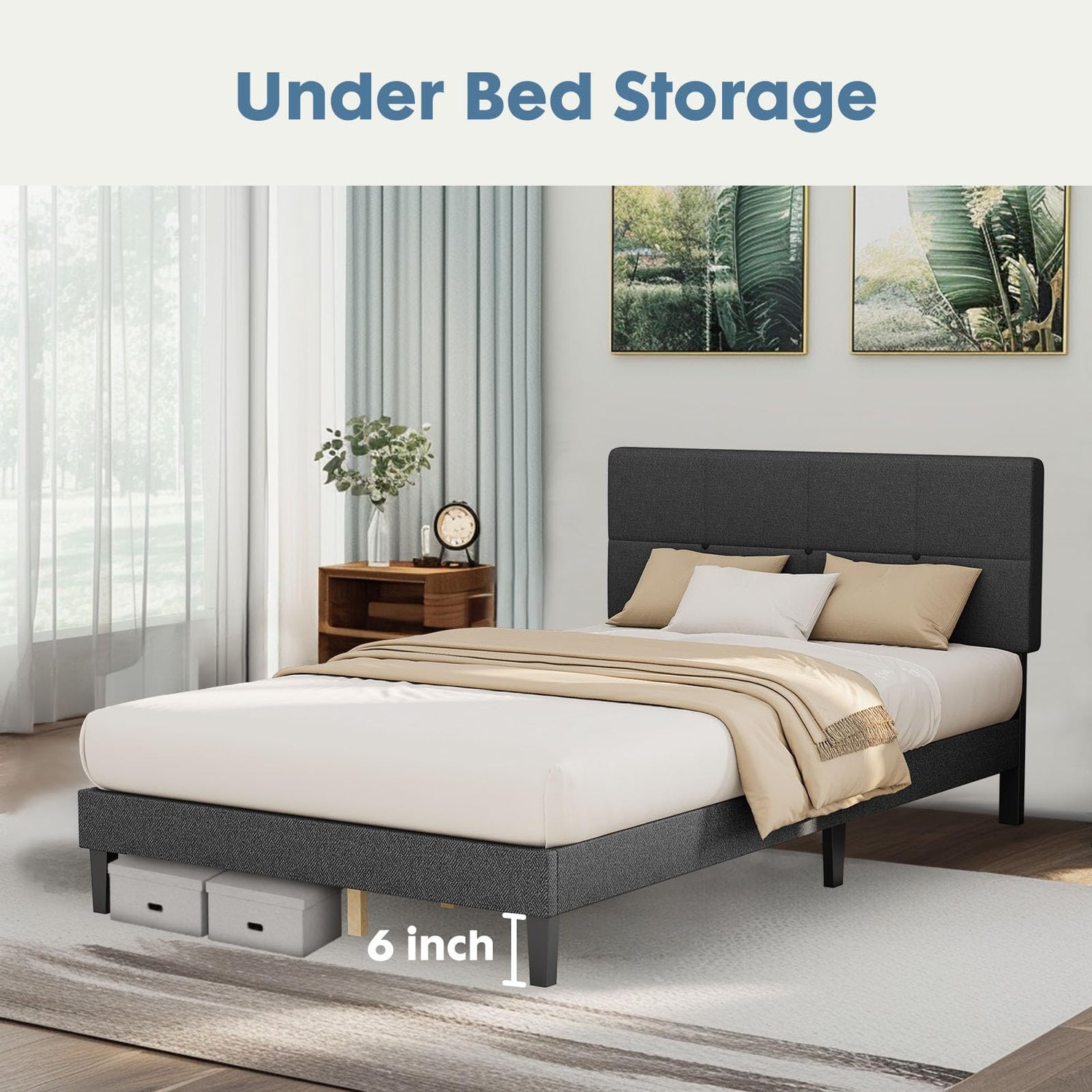 - 【Stylish and comfortable】The grey upholstered headboard combines practicality and comfort to go with any style of room. The fabric-wrapped twin bed frame has the comfortable touch of a foam pad, adding elegance and sophistication to the room with clean, sleek lines, and the bed frame surface is skin friendly.