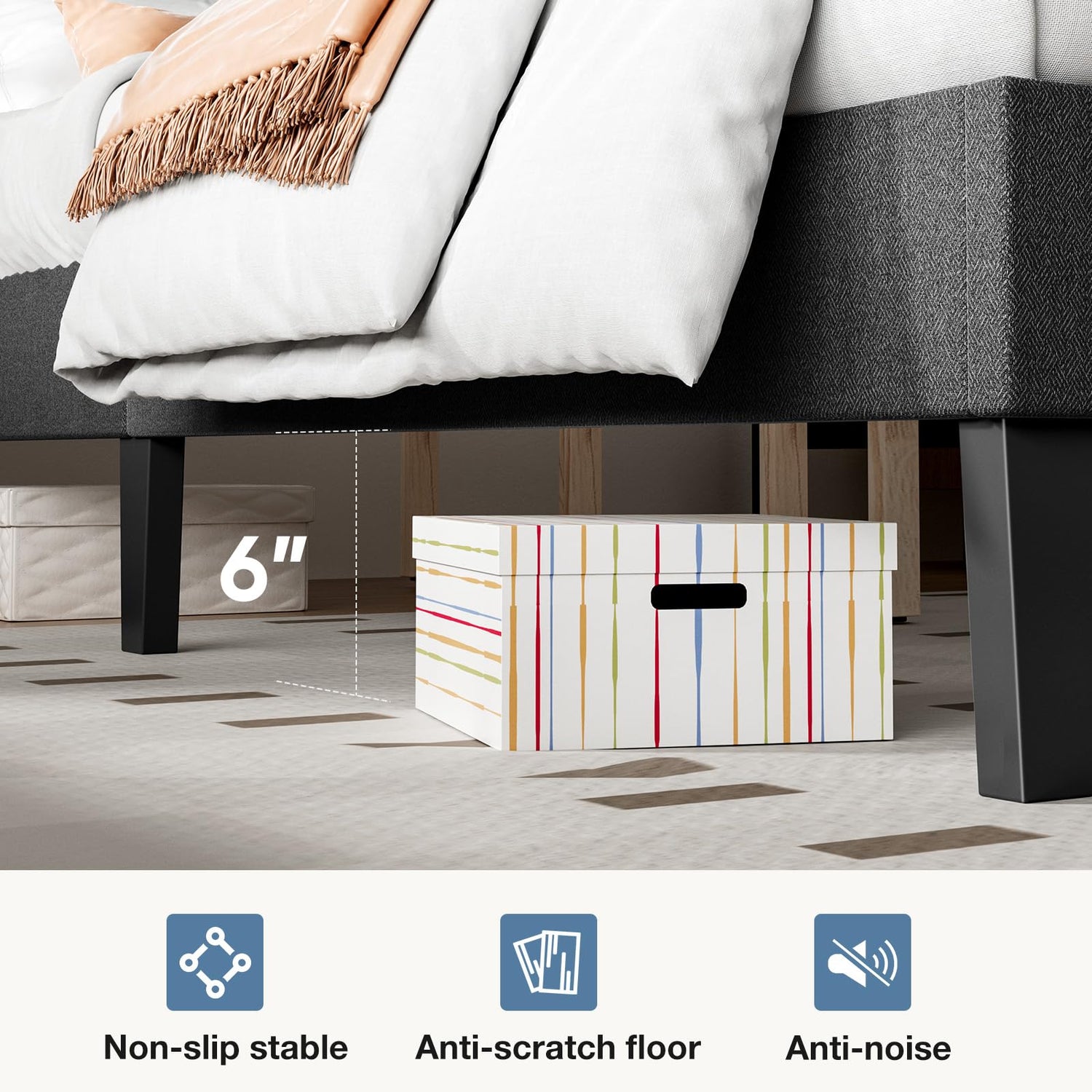 - 【Easy assembly】DUMOS bed frame is carefully crafted for easy assembly, and the product packaging comes with all the necessary accessories and clear installation instructions, making assembly effortless. With the help of two people, the assembly can be completed in 40 minutes.
