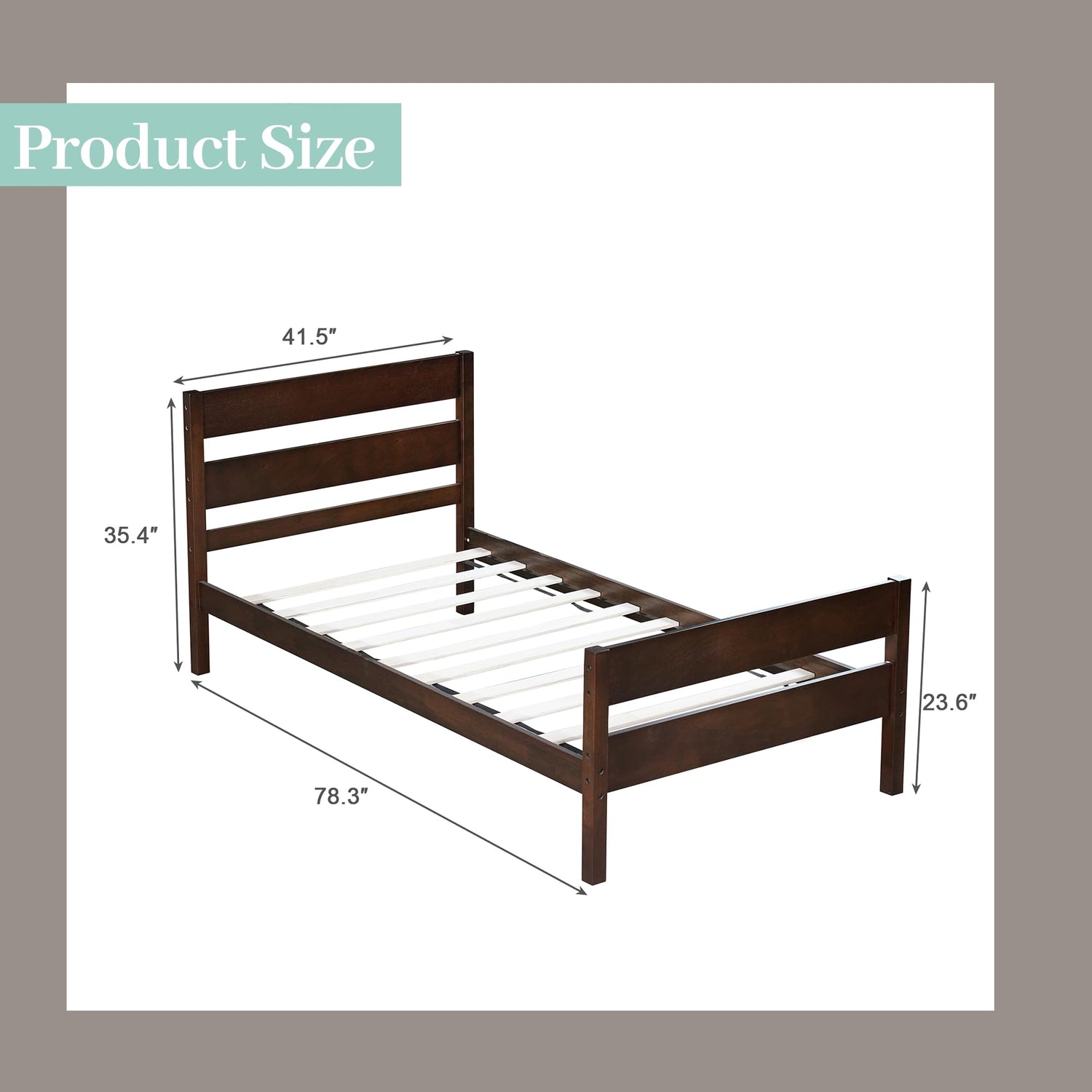 Duxelifin Twin Bed Frames Wood, Wood Twin Bed Frame with Headboard and Footboard, Platform Bed for Bedroom, Guset Room, No Box Spring Needed, Espresso