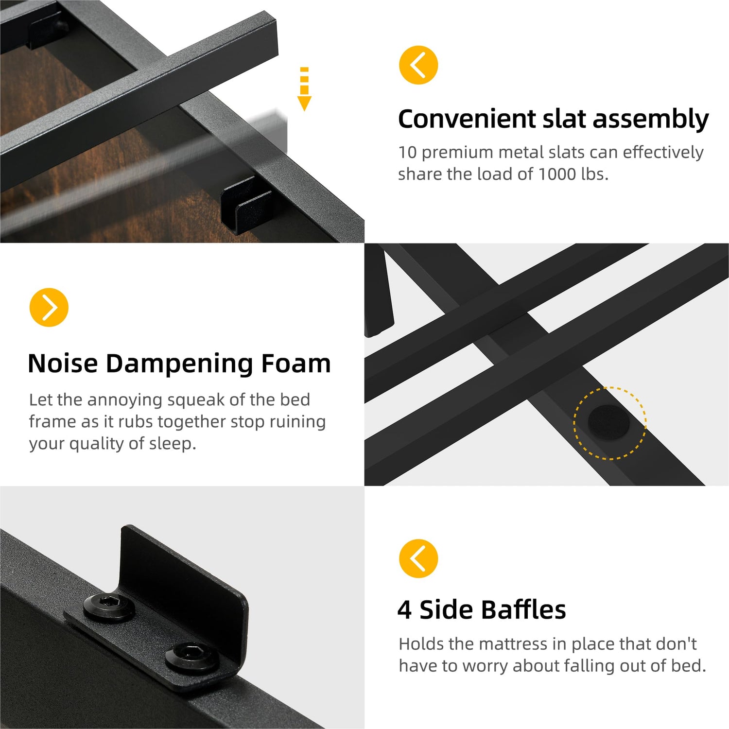 - Noise-Free - Weighing: 1000 pounds. In order to eliminate squeaks and ensure the quali-ty of your sleep, We specially added a mute sponge strip in the middle beam of the king bed frame to avoid friction between metal parts. This design ensures a noise-free sleep experience, allowing you to rest peacefully throughout the night.
