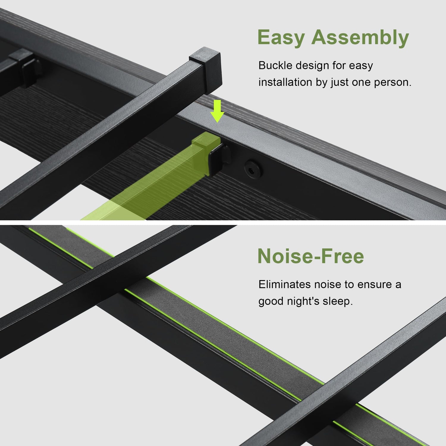 - Stable and Noise-Free: 13 heavy-duty metal slats, and legs with reinforced diagonal support, ensure the comfort and durability of the king bed. The silent bar design reduces friction with the mattress, bringing a good night's sleep with you