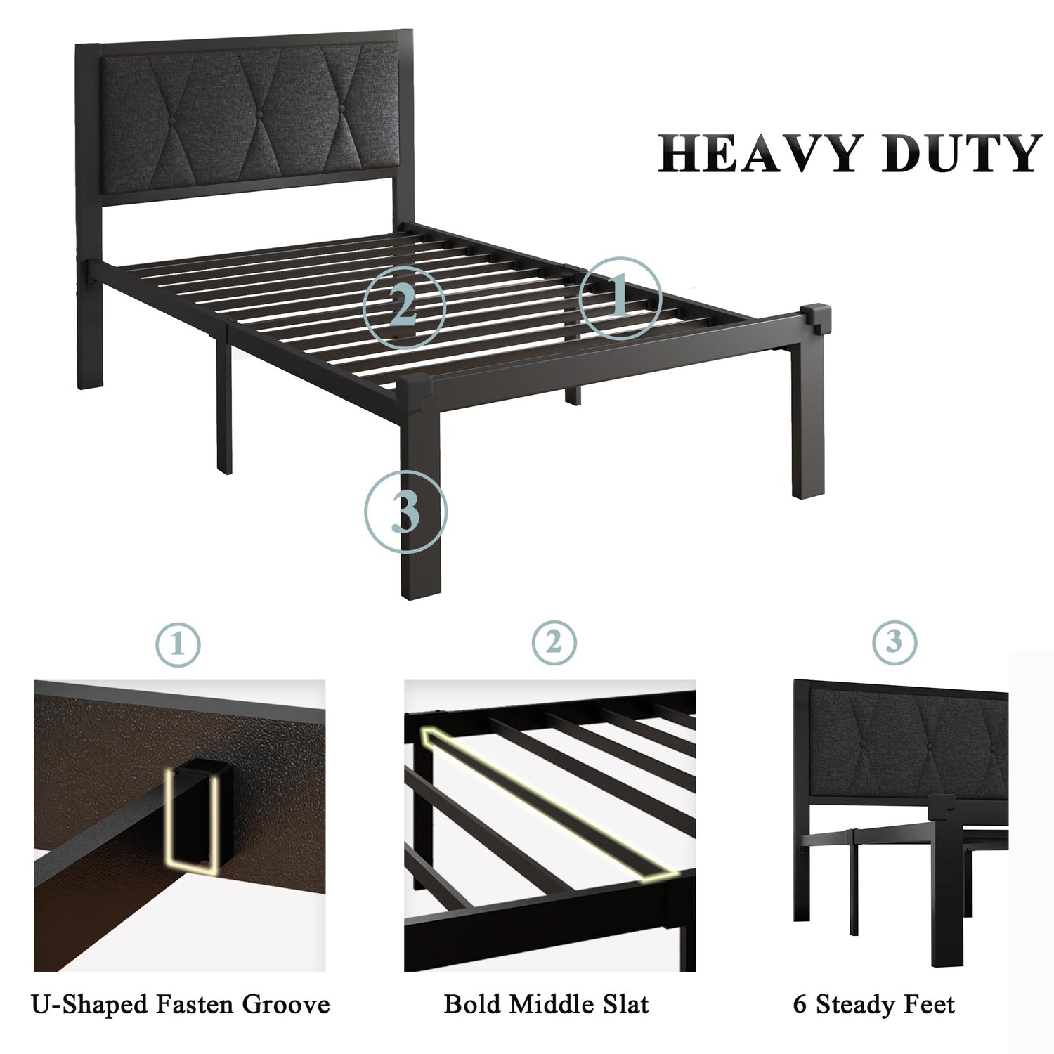 - Stylish & Modern Style: Perfect combination of metal bed frame and geometric fabric headboard, classic shape of lines and tufted buttons, creating a modern and vintage style, suitable for all kinds of bedrooms