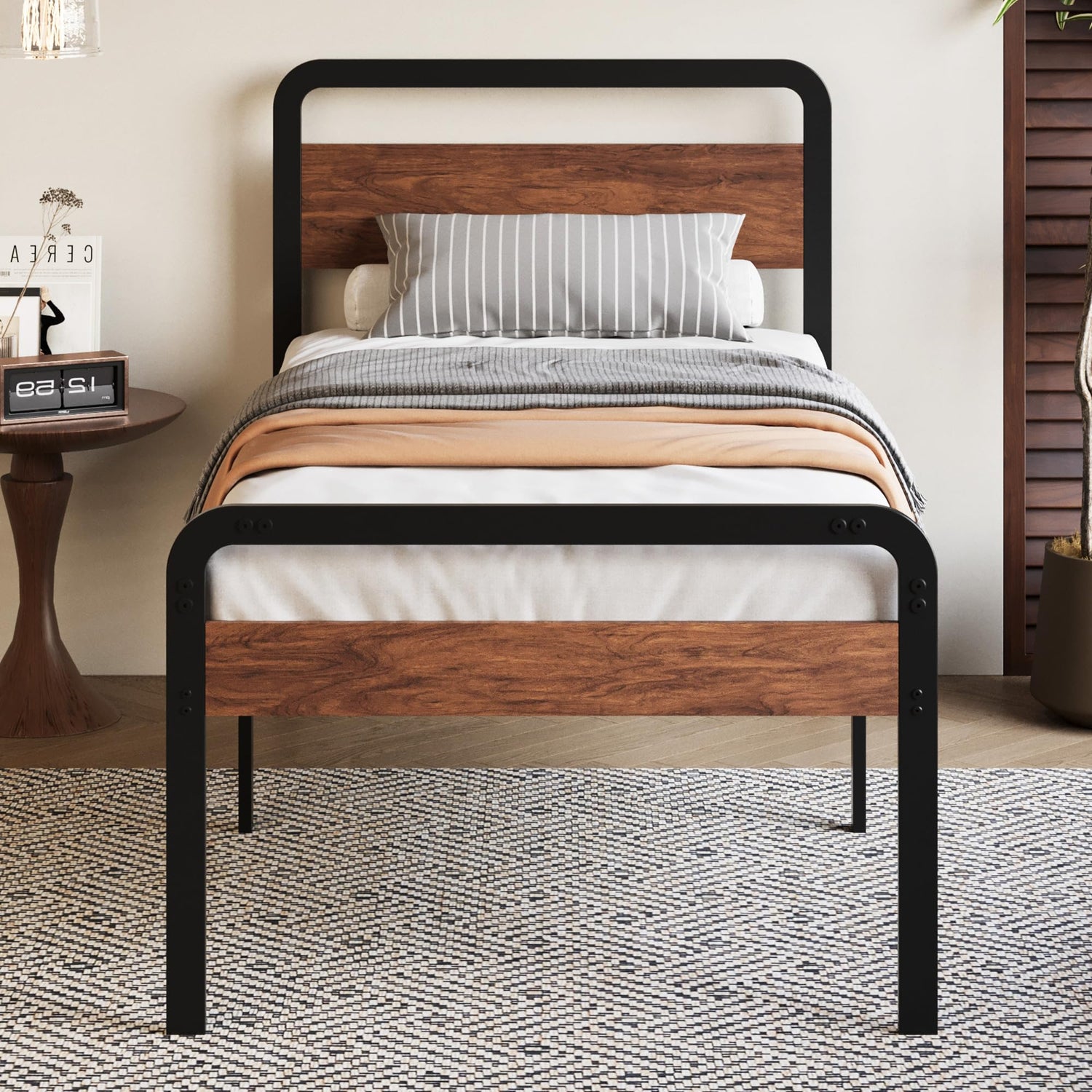 - Just Right Design - The 18 inch wood twin bed frame's lightweight design is suitable for a variety of rooms, making it easy to create the most of the available space. And the powder coated steel frame is easy to maintain.