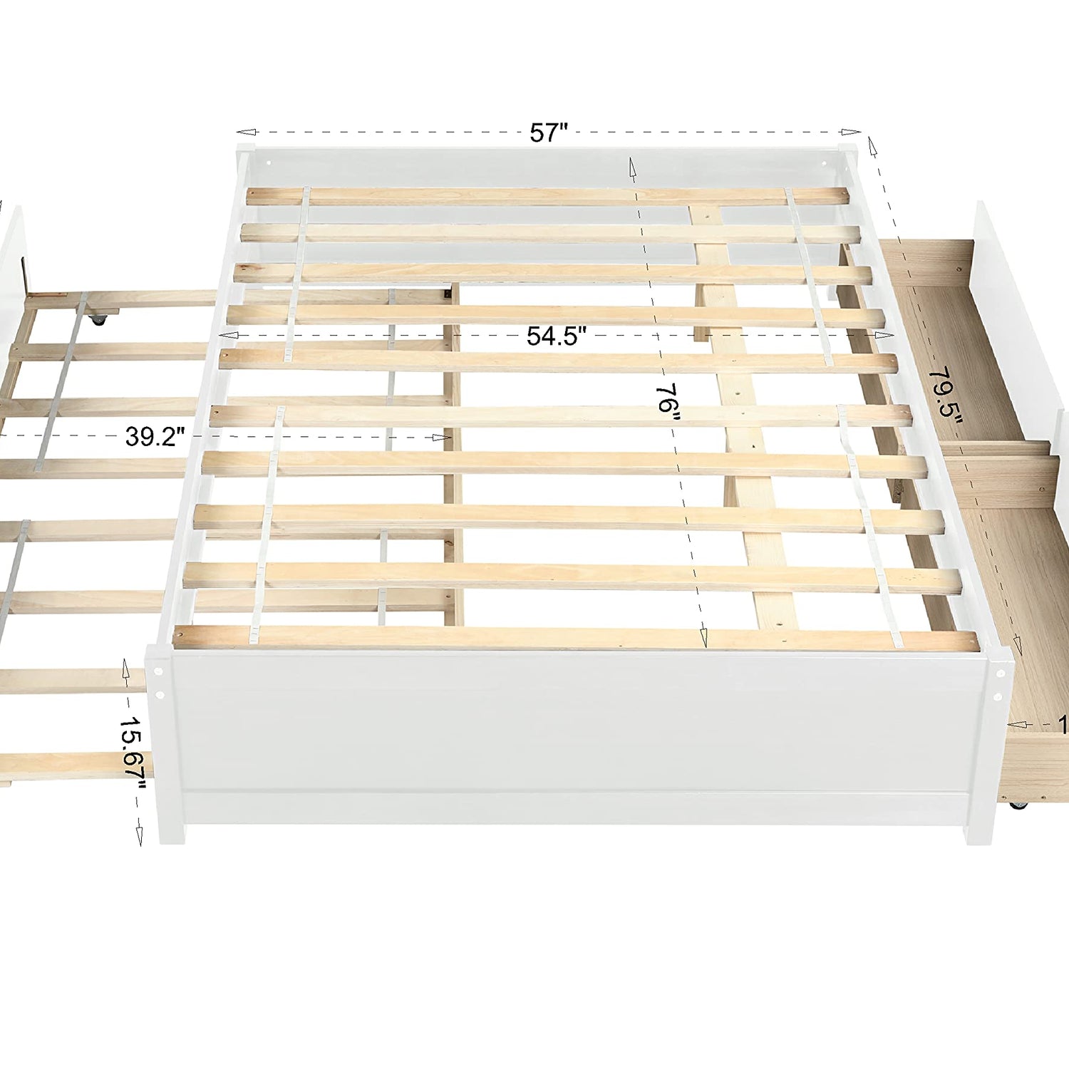 Bellemave White Full Size Bed Frame with Trundle and 2 Storage Drawers