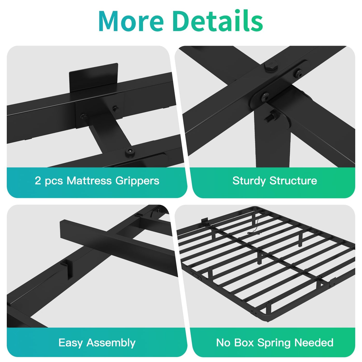 • 【Sturdy & Squeak-Resistant Metal Build】 Crafted with 11 stable metal slats and 9 thick legs for reliable support. Even weight distribution prevents wobbling or creaking, ensuring a quiet night’s sleep. Durable painted metal frame stands up to daily use