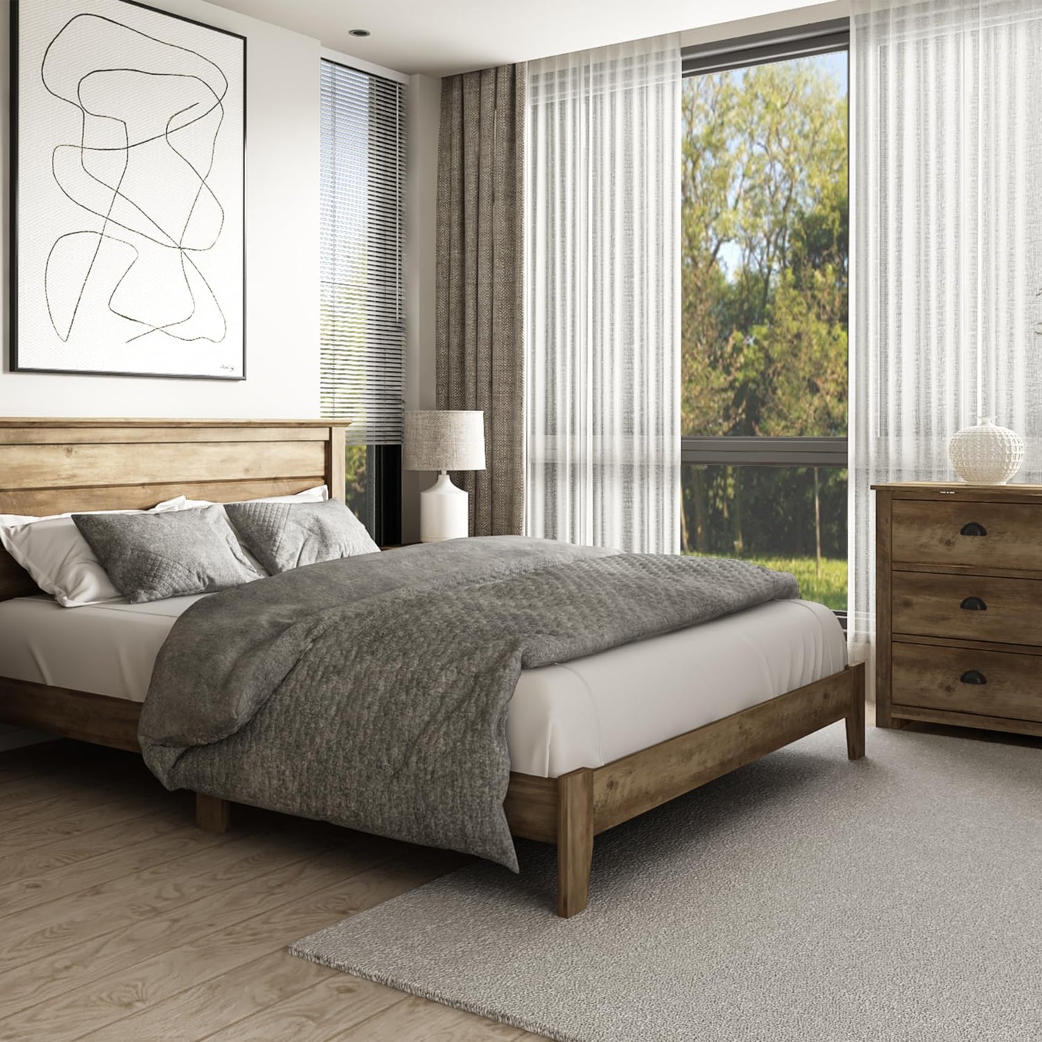 Galano Tiena Queen Bed Frame in Knotty Oak with Wooden Slat Support