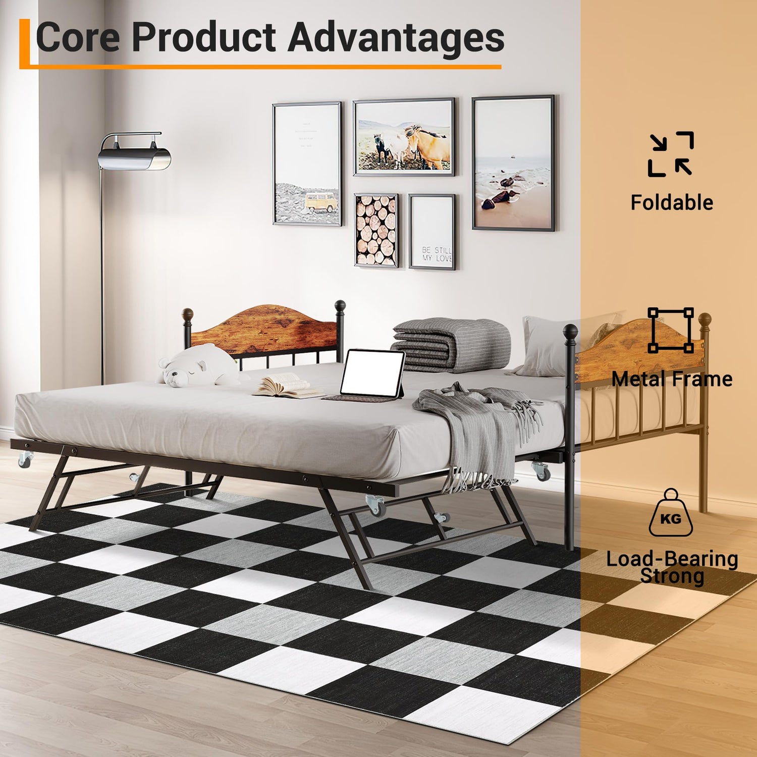 Garvee Twin Daybed with Trundle, Twin Bed Frame with Sturdy Metal Foldable Trundle, Sofa Bed with Stylish Headboard for Living Room, Bedroom and Guest Room, Black