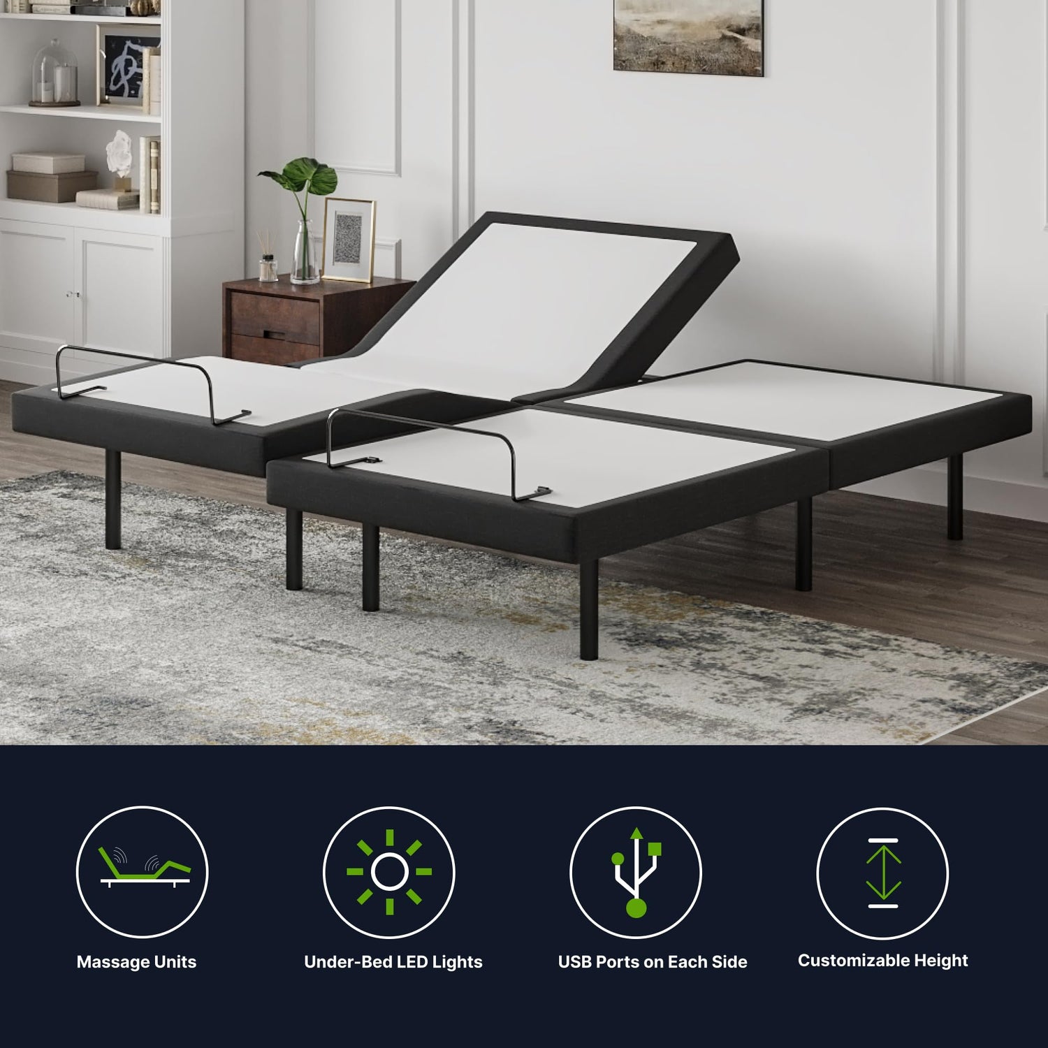 GhostBed Adjustable Bed Frame Split King 14" Cooling Memory Foam Mattress - Adjustable Electric Bed Base with Zero Gravity and Massage – Split King Adjustable Base with Mattress