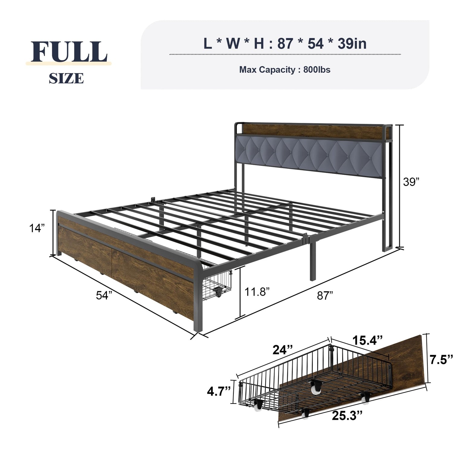 - Convenient USB Outlet: Stay connected and charged at all times with a handy USB outlet embedded within the bed frame, allowing you to charge your devices conveniently without the hassle of searching for outlets.