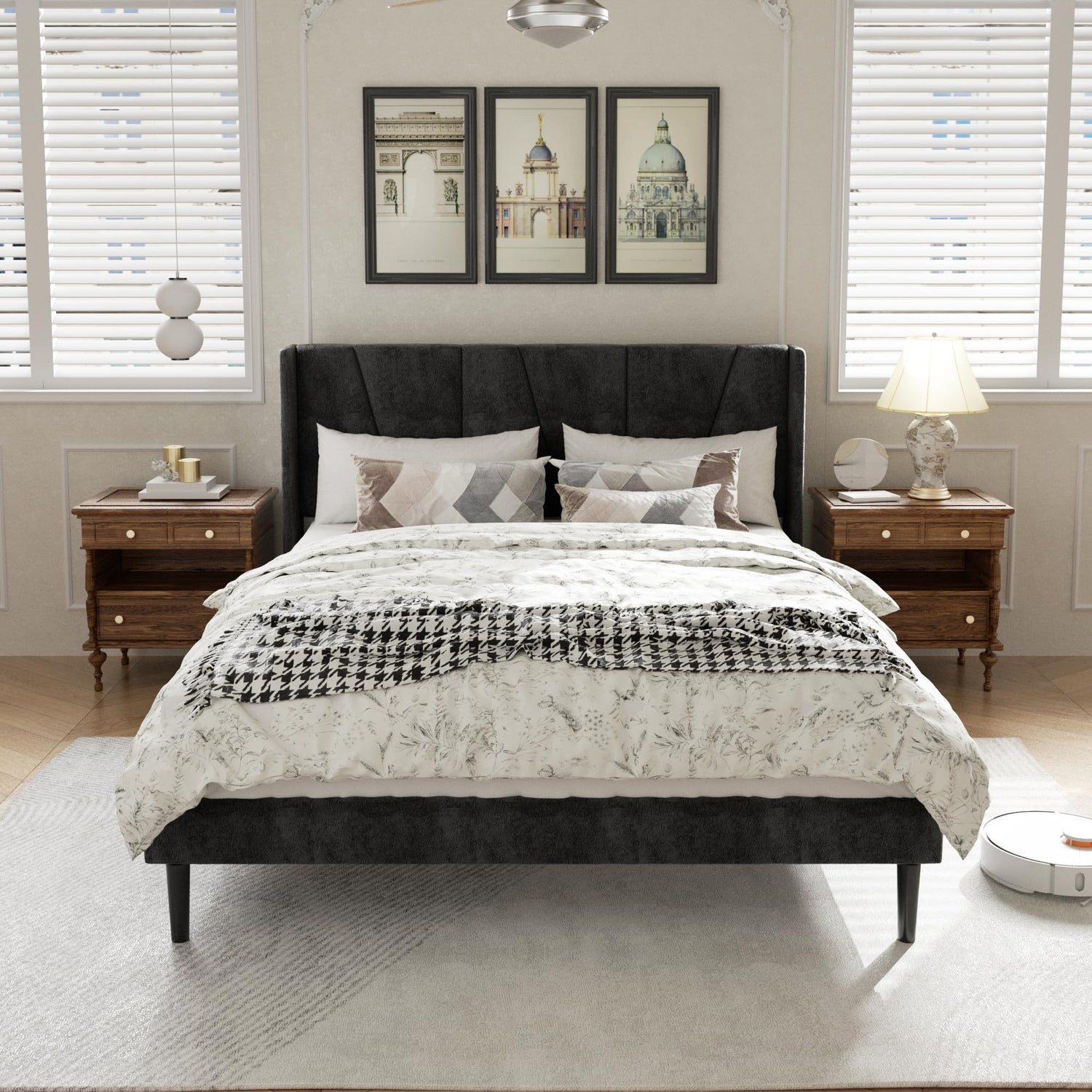 - CONTEMPORARY STYLE: Queen bed frame with upholstered velvet and wingback headboard, this contemporary style perfectly matches a variety of bedroom styles and makes a stunningly chic addition to your bedroom