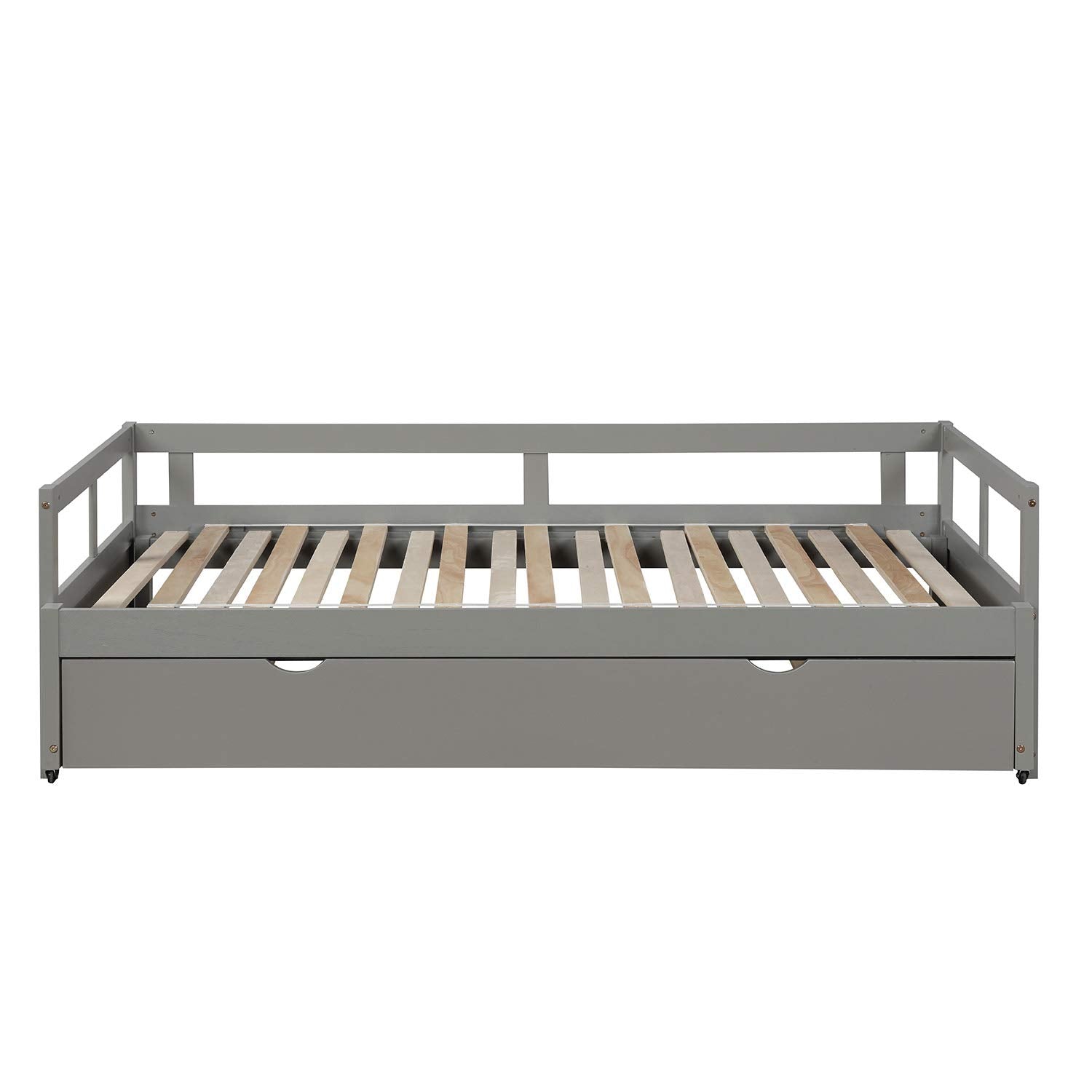 - [Twin to King Design] - When the trundle is pulled apart, this daybed can be expanded from twin size to King size.The twin size is suitable for children or daily use, but when the guests arrive, King size is the best choice.