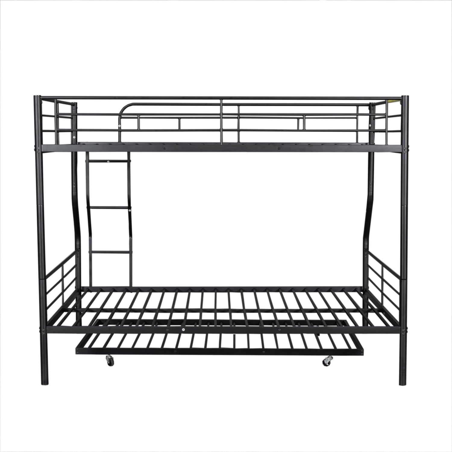 • [Metal Bunk Beds with Twin Size Trundle] - This metal bunk bed features one full xl size upper bed, one queen size bottom bed and a twin size trundle bed for accommodating your kids or any overnight sleepers. Our bunk bed frame is widely used and ideal for apartments, dormitories and kid's rooms.