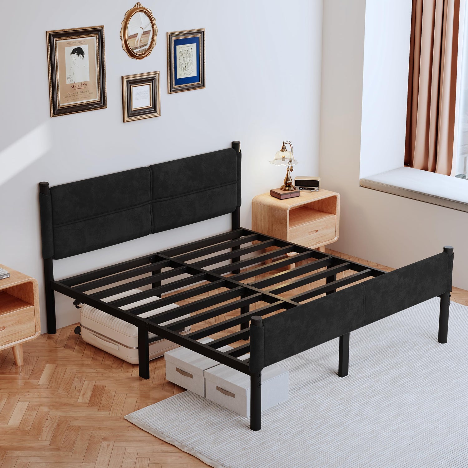 Henshwon Metal Bed Frame,14Inch Queen Size Bed Frame with Storage Space,Heavy Duty Sturdy Mattress Foundation,Easy Assembly,No Box Spring Needed,Queen