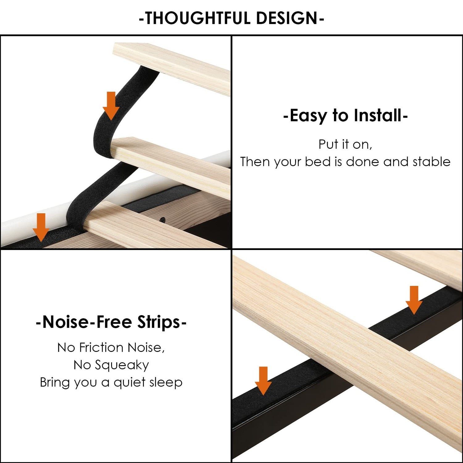 Built for durability, this modern bed frame boasts a robust construction made from natural wood boards and heavy-duty slats, offering unparalleled stability with a load-bearing capacity of up to 900 lbs. Enjoy a peaceful night's sleep thanks to the silent bar and powerful Velcro strip that minimise friction and eliminate noise.