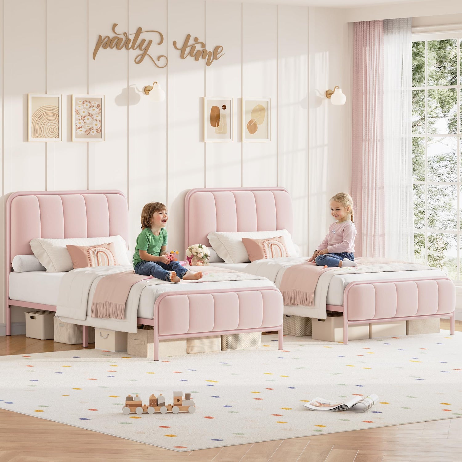 - PLATFORM BED WITH HEADBOARD: The soft-packed part of pink bed frames’ padded headboards are made of high-quality velvet wrapped with high resilience sponge, perfect for sitting on this bed to read the books or playing an iPad