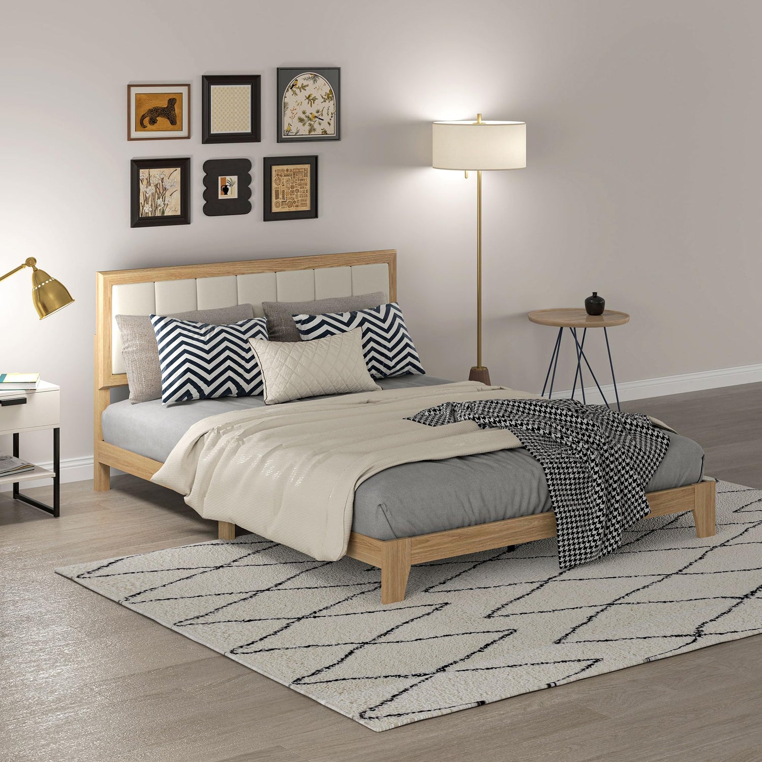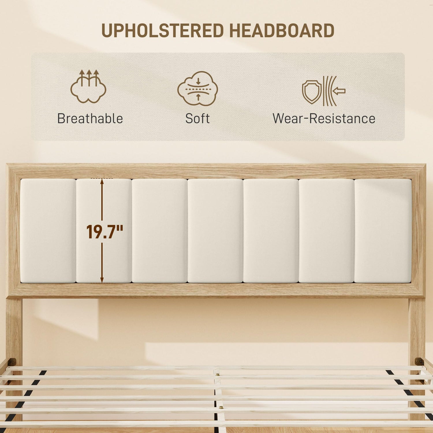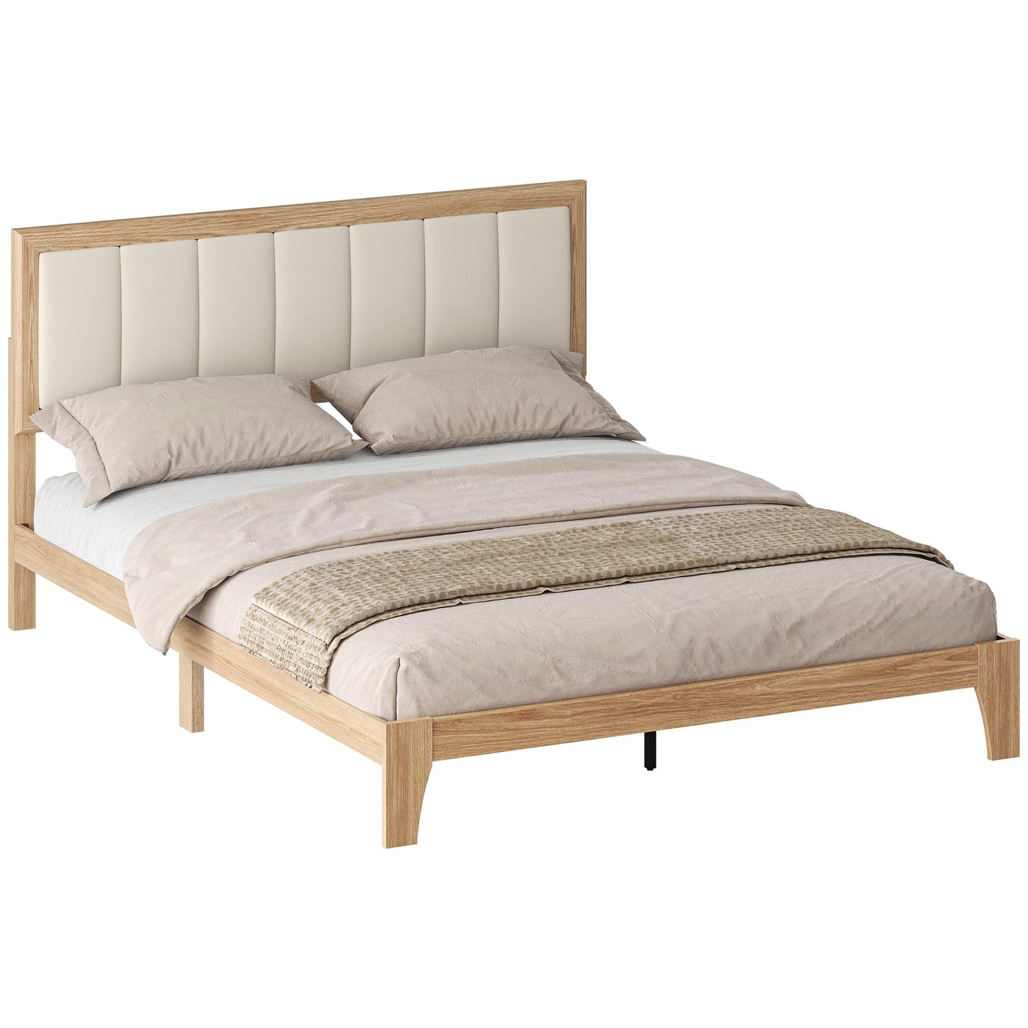 HOMCOM Queen Size Bed Frame with Upholstered Headboard, Platform Bed Frame with Wooden Slats, No Box Spring Needed, Easy Assembly, Oak