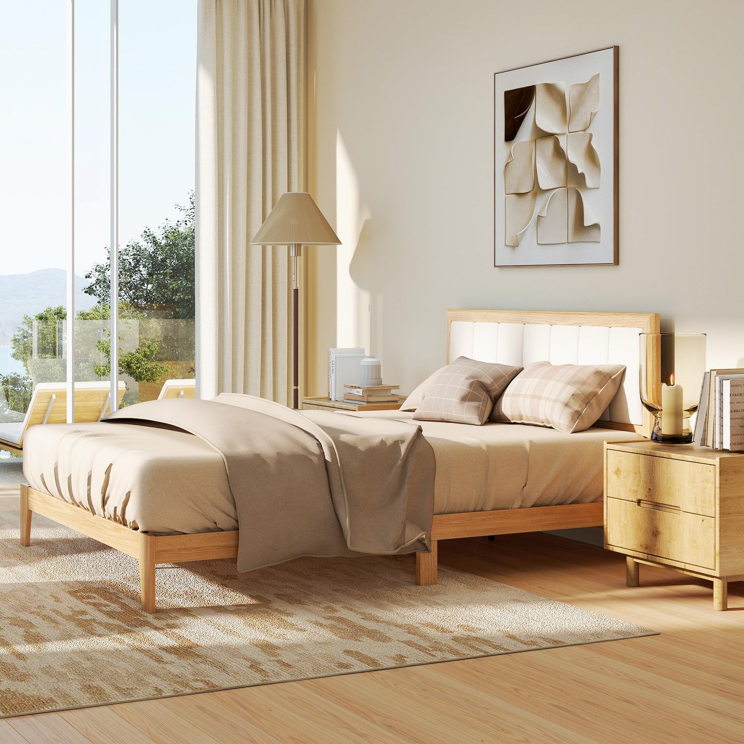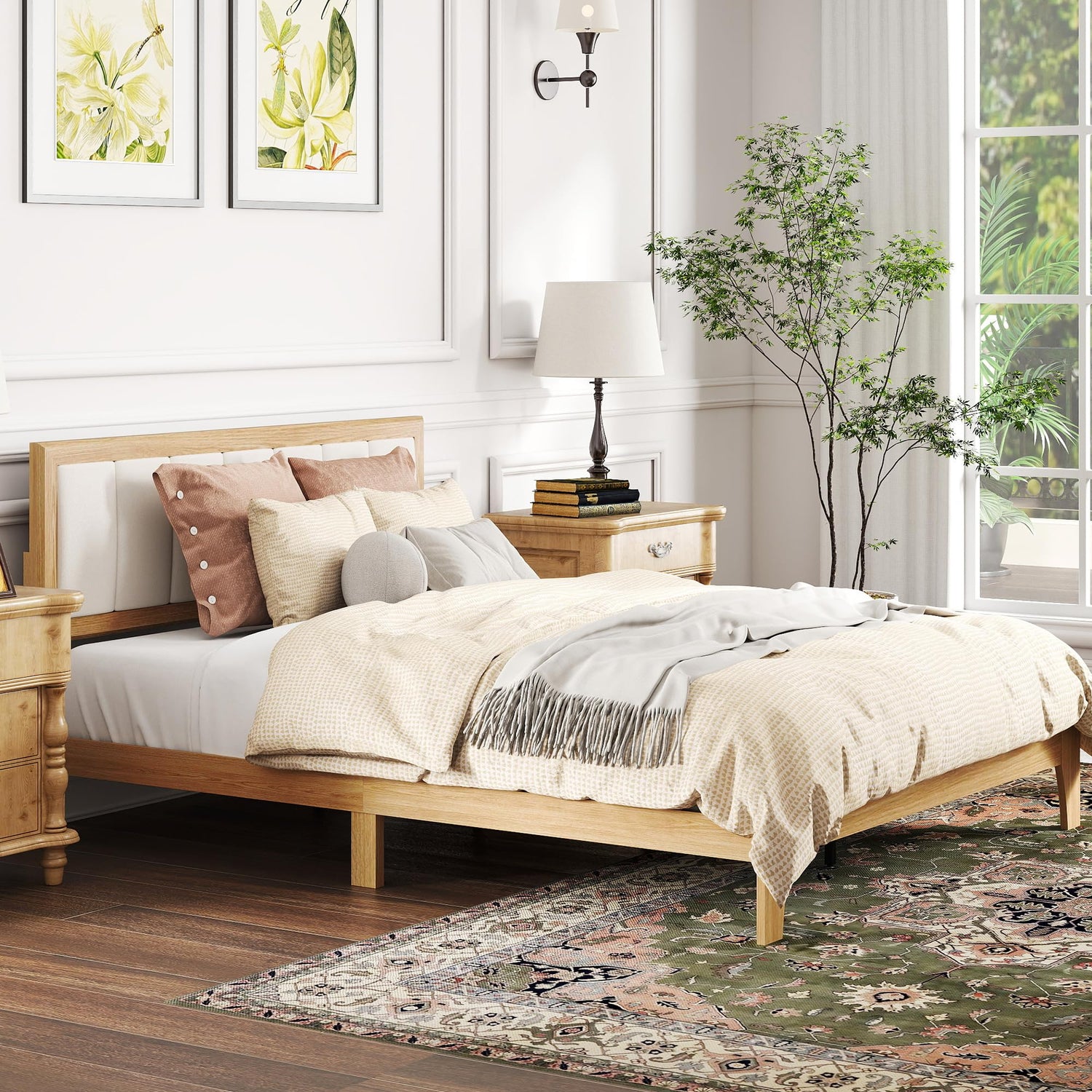 - Stylish Comfort & Mid-Century Charm: Designed with an upholstered headboard, the queen bed frame offers comfort for lounging or reading. The blend of linen-feel fabric and wood grain frame brings a mid-century modern esthetic, enhancing bedroom decor
