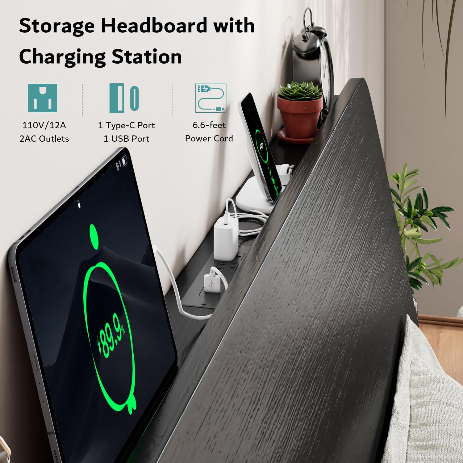 - Ergonomic Storage Headboard: The ergonomic design solid wooden headboard perfectly suits the natural curvature of the spine, and brings you a cozy backrest experience. Besides, 4" storage space behind it provides easy access to essential items