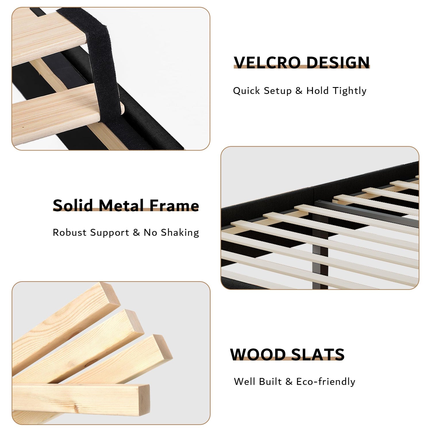 - Sturdy & Solid Support: Heavy duty bed with 12 sturdy wooden slats and metal frame provide solid support for growing bones. EVA Foam and velcro design for a noiseless night
