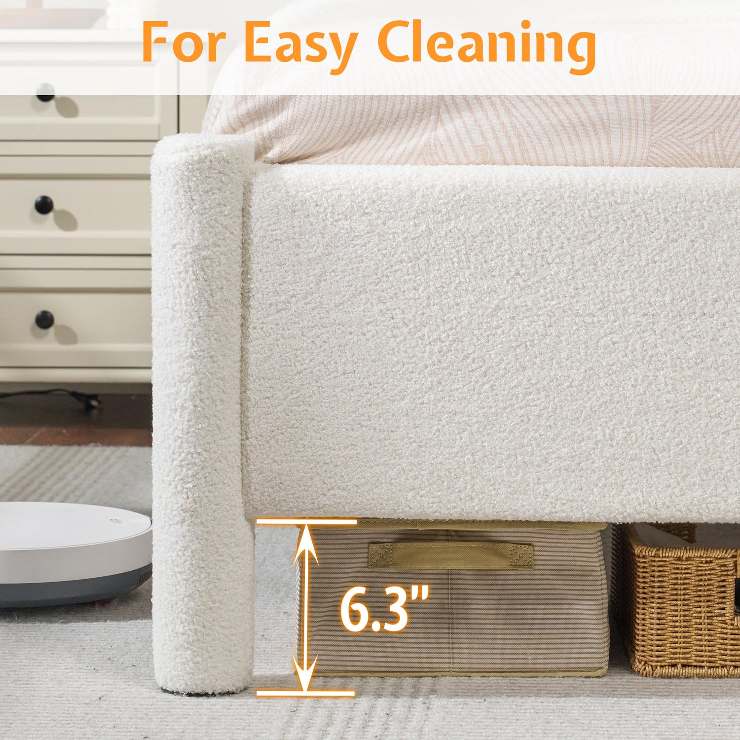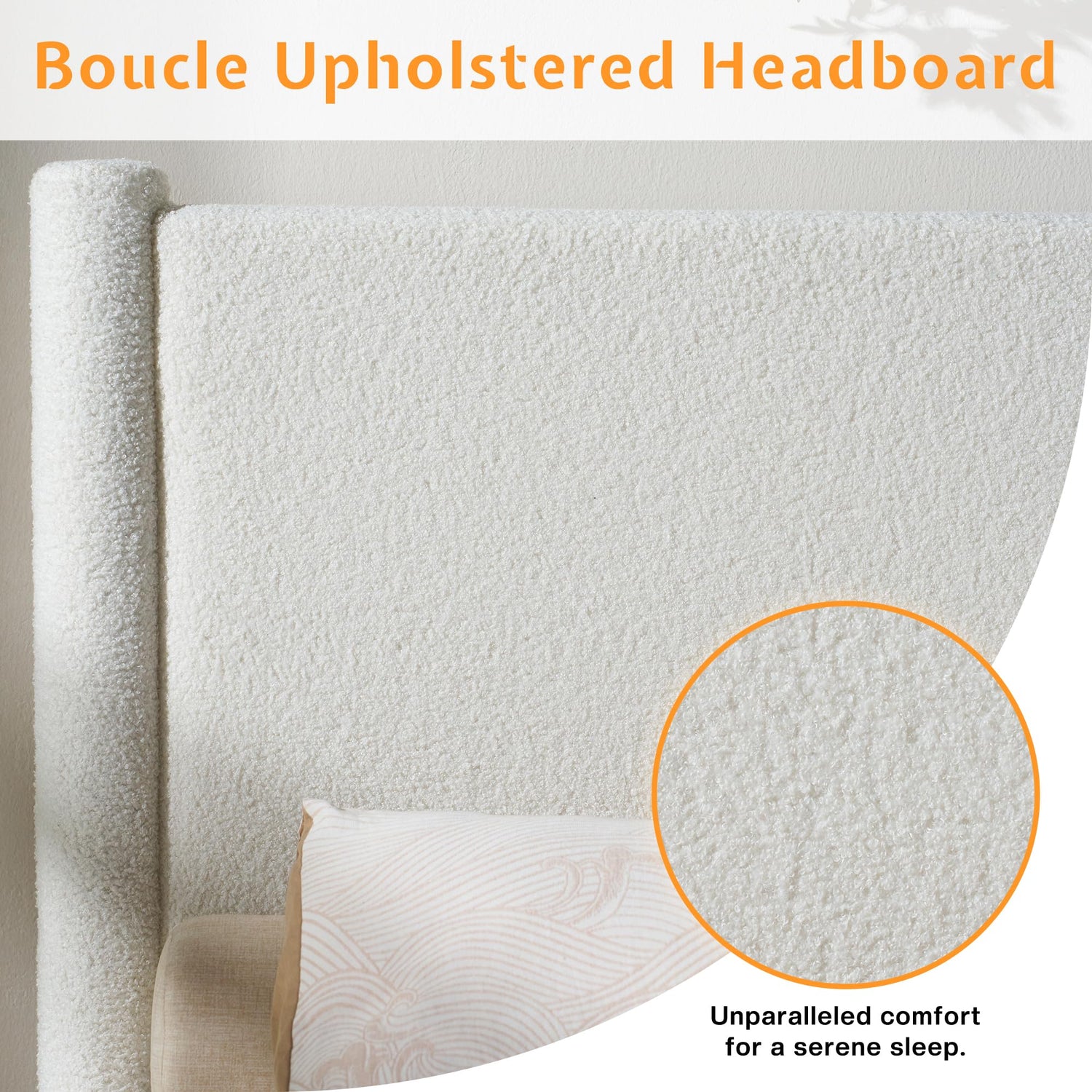 • Fluffy Boucle Upholstered: Crafted in luxurious boucle fabric, our king size bed frame offers cloud-like comfort. The fabric cover fills your bedroom with warmth and tranquility, making it a perfect, elegant addition to your modern home.