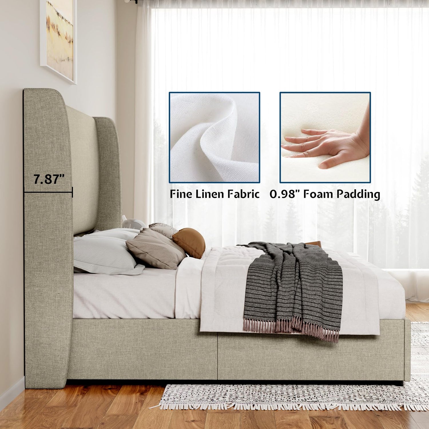 • Modern and Stylish: 52.1" high wingback headboard is wrapped in soft linen, and the neutral color makes this king size bed frame suitable for a variety of room decor styles.