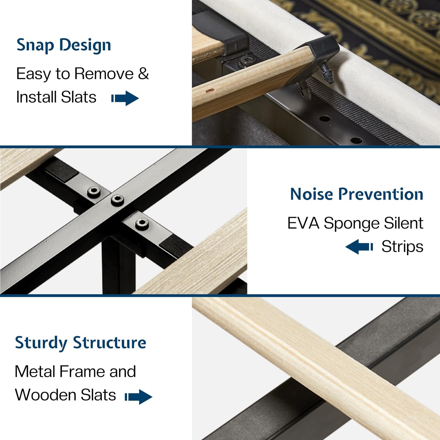 • Sturdy Construction: The sturdy steel frame and wood slats provide strong support to keep your mattress stable. Recommended mattress height is 8" - 16".
