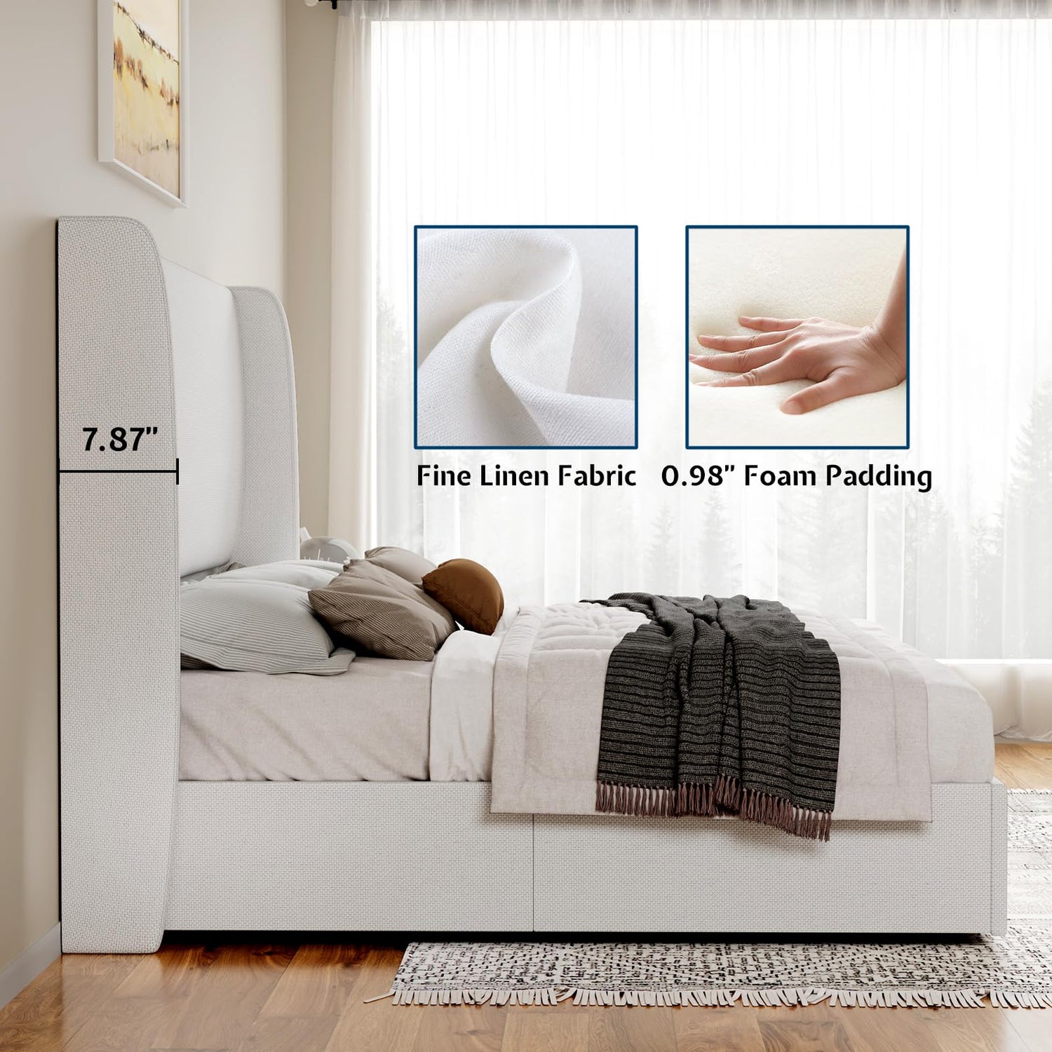 • Modern and Stylish: 52.1" high wingback headboard is wrapped in soft linen, and the neutral color makes this king size bed frame suitable for a variety of room decor styles.