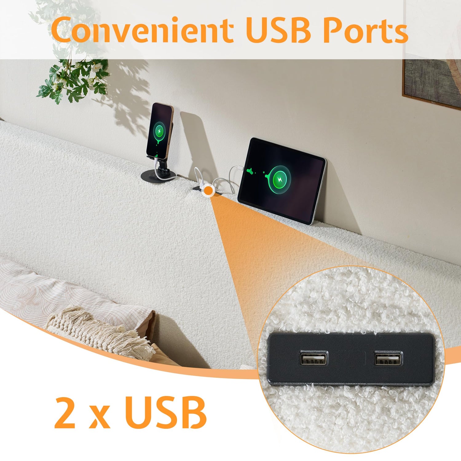 • Boucle Chenille Comfort: The boucle chenille fabric is skin-friendly, breathable, and stylish. Its cozy texture elevates your upholstered bed with modern elegance while ensuring everyday comfort.