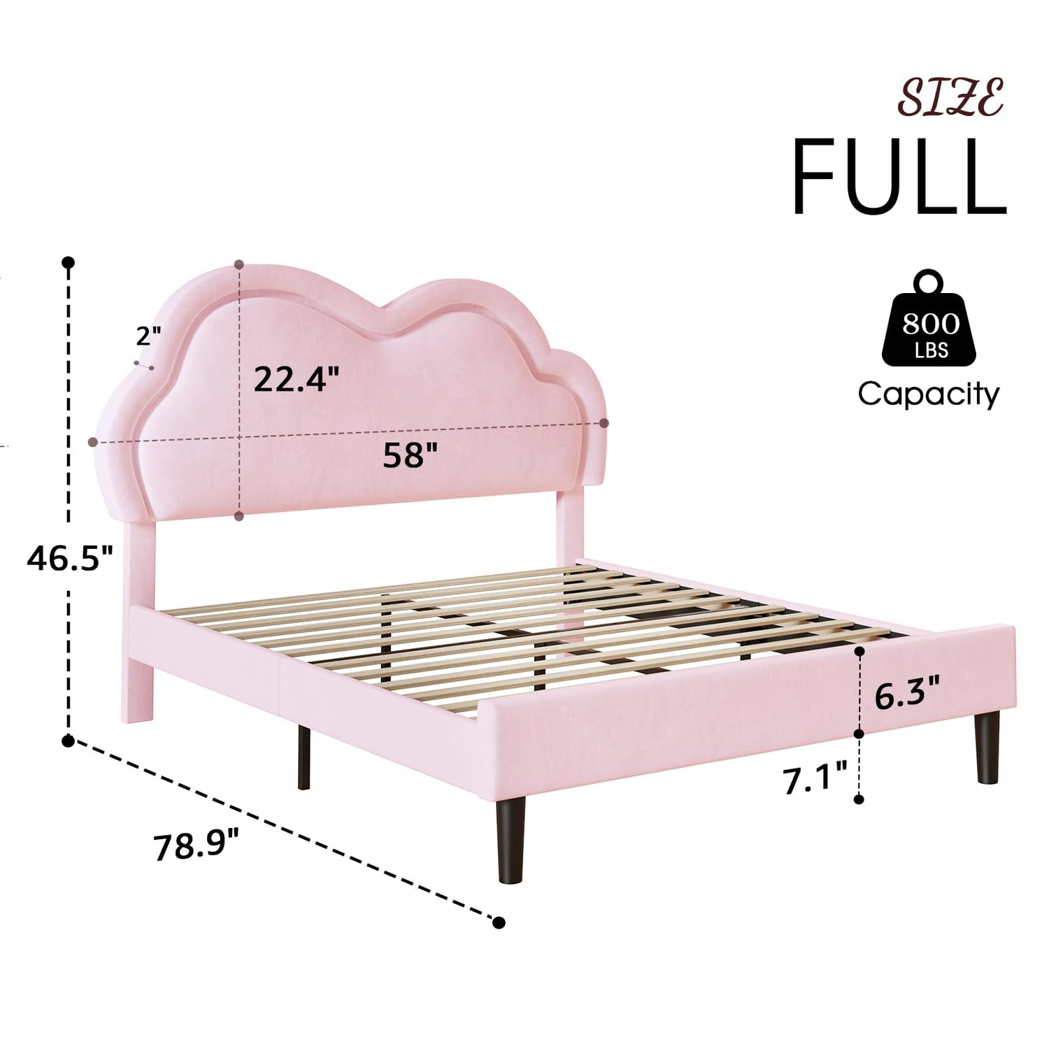 Jocisland LED Bed Frame Full Size Velvet Upholstered Platform Bed with Adjustable Cloud Headboard, No Box Spring Needed, Easy Assembly, Pink