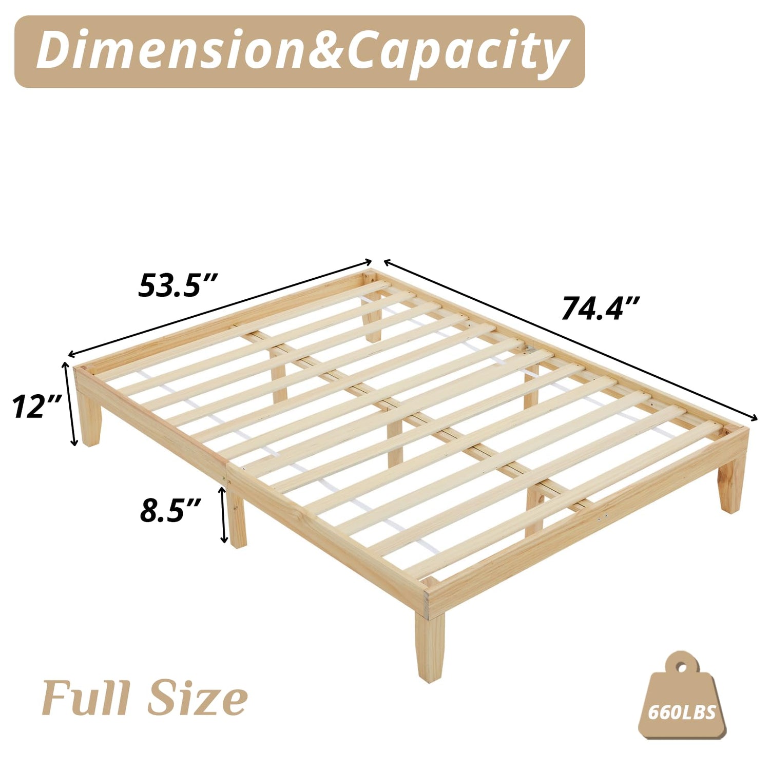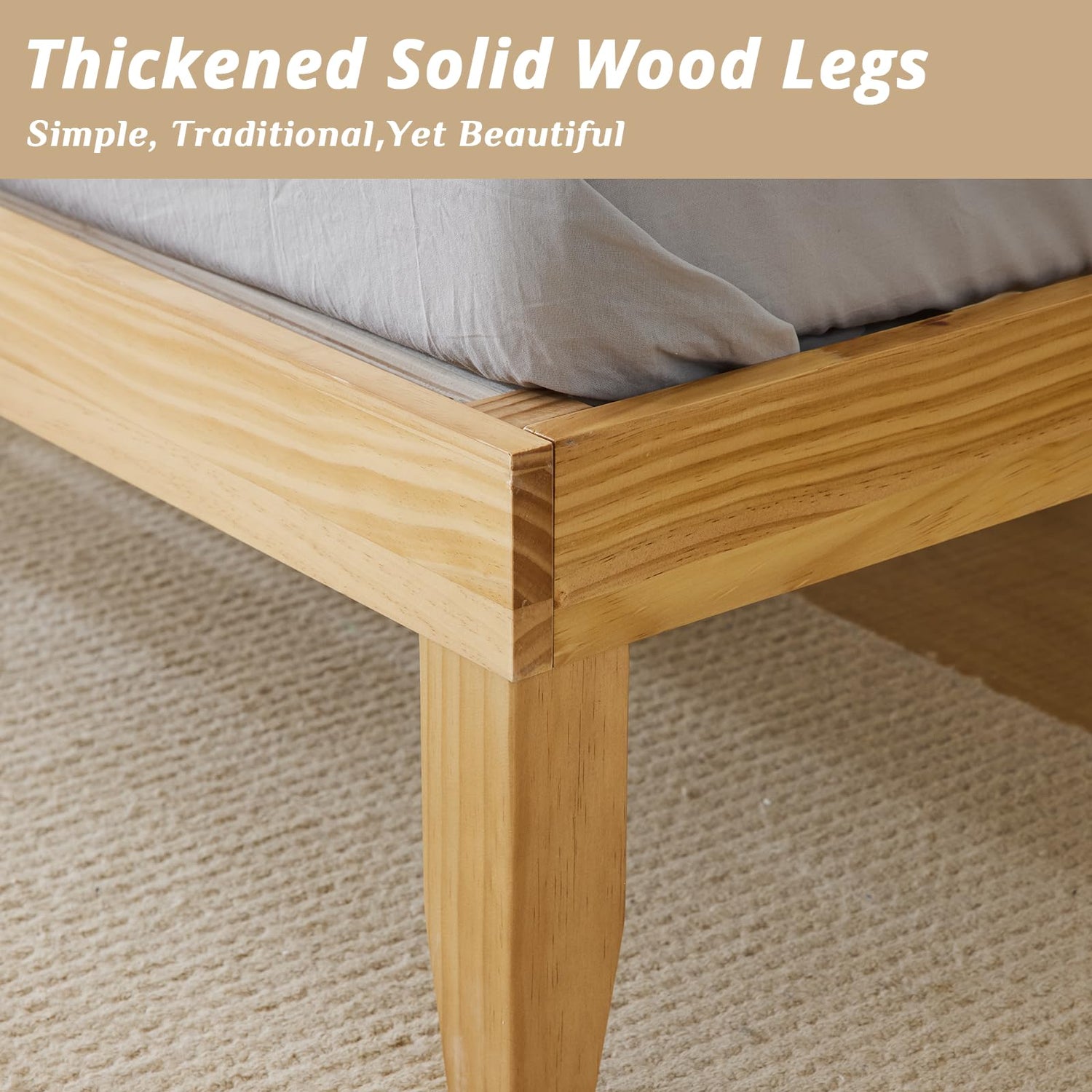 - 【High-quality Materials】 Our high quality bed frame is made of solid pinewood and 14 poplar slats to ensure long-lasting use. This wood bed frame features thickened solid wood legs for stronger support and greater stability, and can withstand a load of up to 660 pounds.Bed frame is make from FSC-Certified wood.