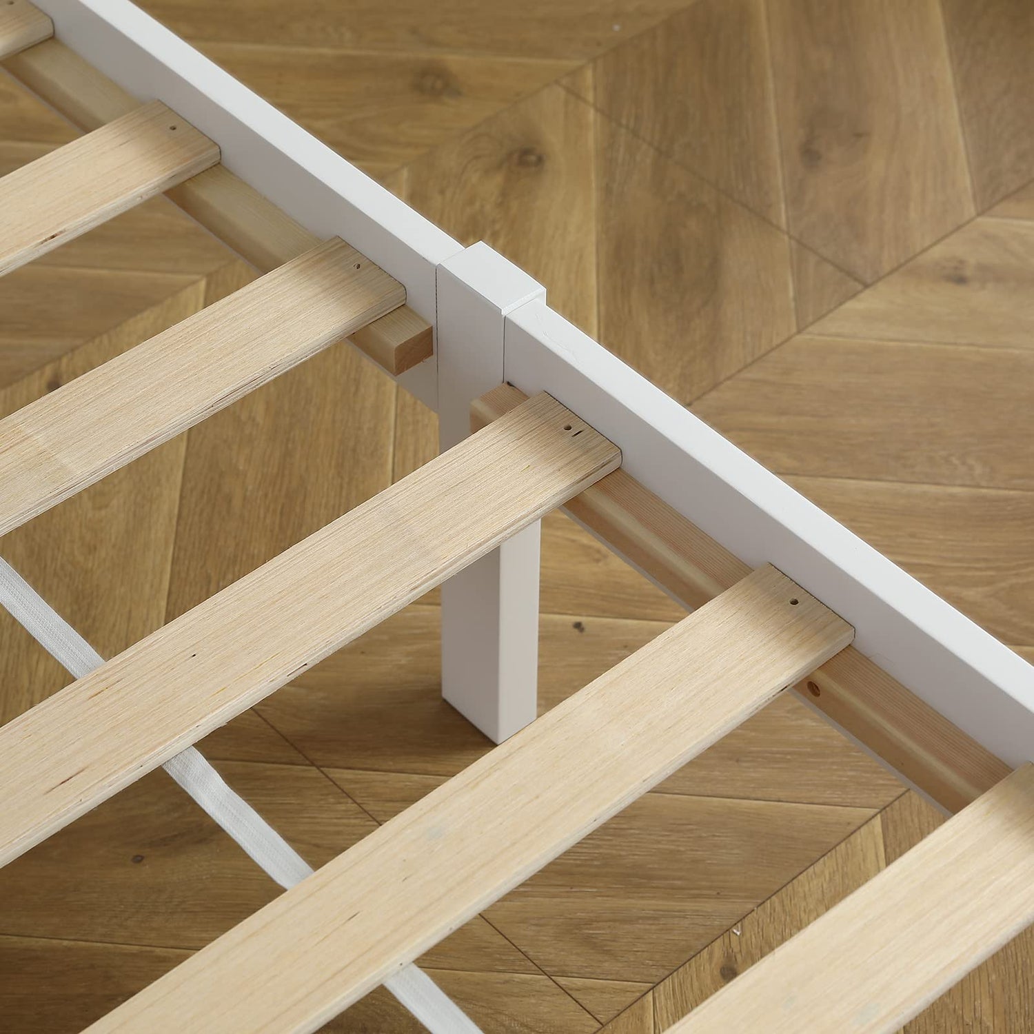 - TIMELESS DESIGN - Finished with pure white color, designed with vertical stripes on the headboard and the footboard, this twin size wood bed frame is never outdated. The simple style makes it perfect blended in any bedroom or guest room.
