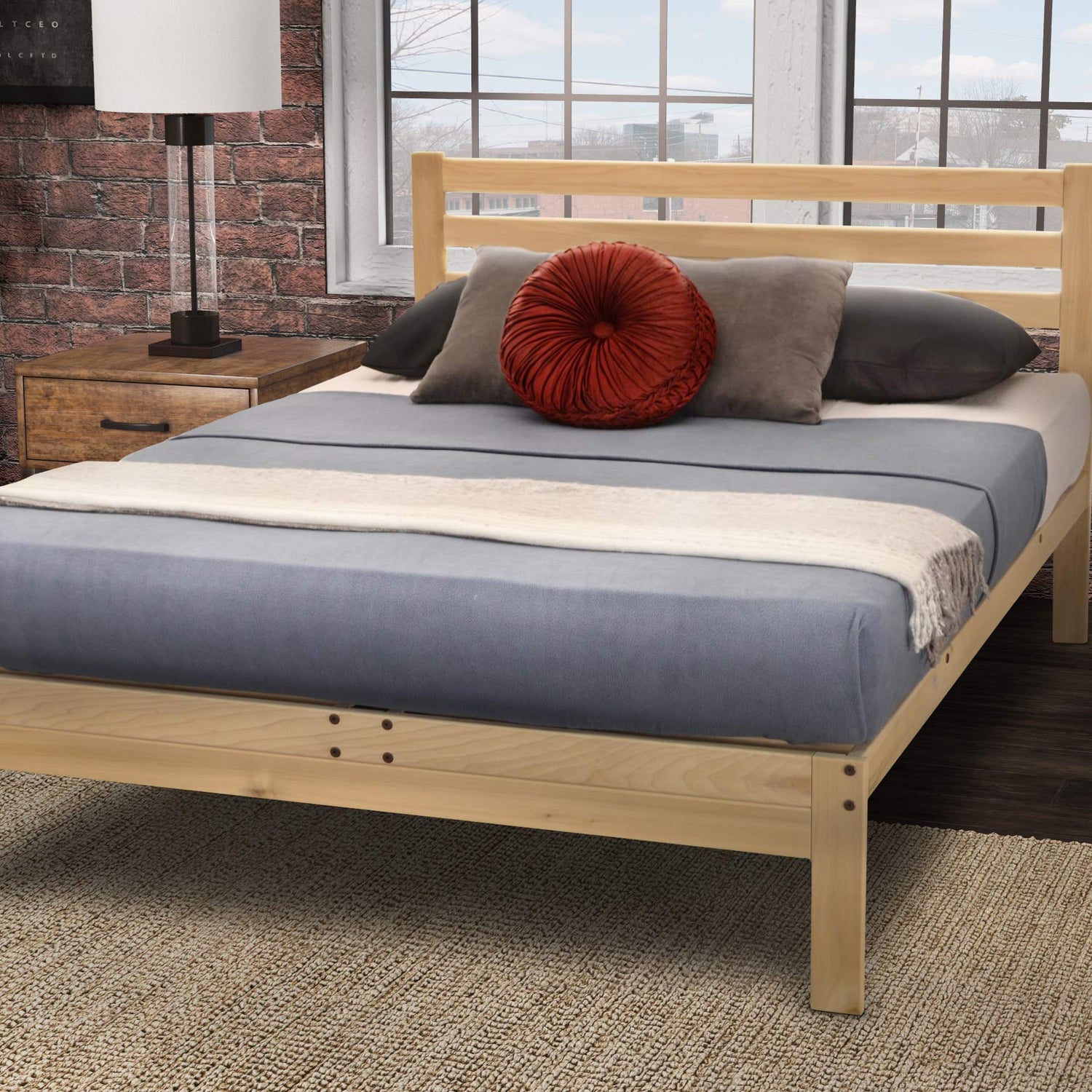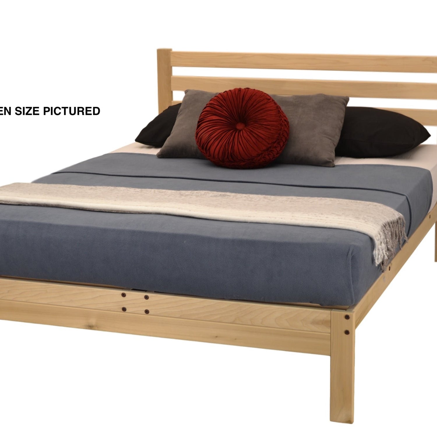 Lexington Natural Wood Platform Bed - Full Size, Minimalist Design with Slatted Headboard