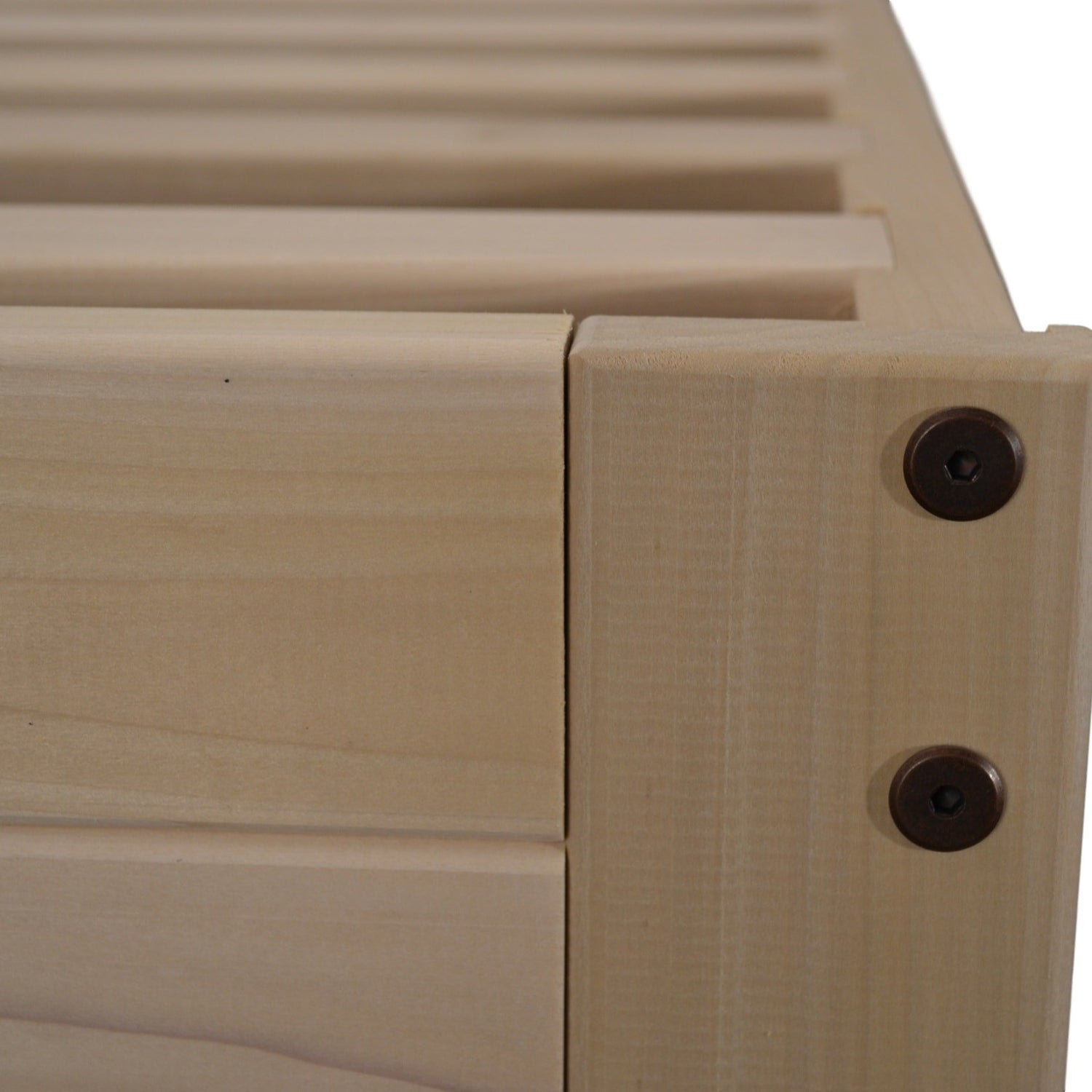 Introducing the Lexington Natural Wood Platform Bed, a beautiful embodiment of minimalist design combined with exceptional functionality. Crafted by KD Frames, this full-size bedframe stands out with its striking unfinished natural wood finish, ensuring it serves as a stunning focal point in any bedroom setting.
