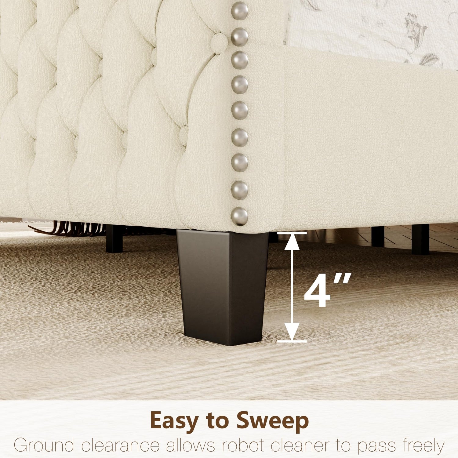 - Elegant Velvet Upholstery: Soft velvet wraps around the bed frame with hand buttoned deep tufted texture and studded accents, creating a regal and modern look for your bedroom.