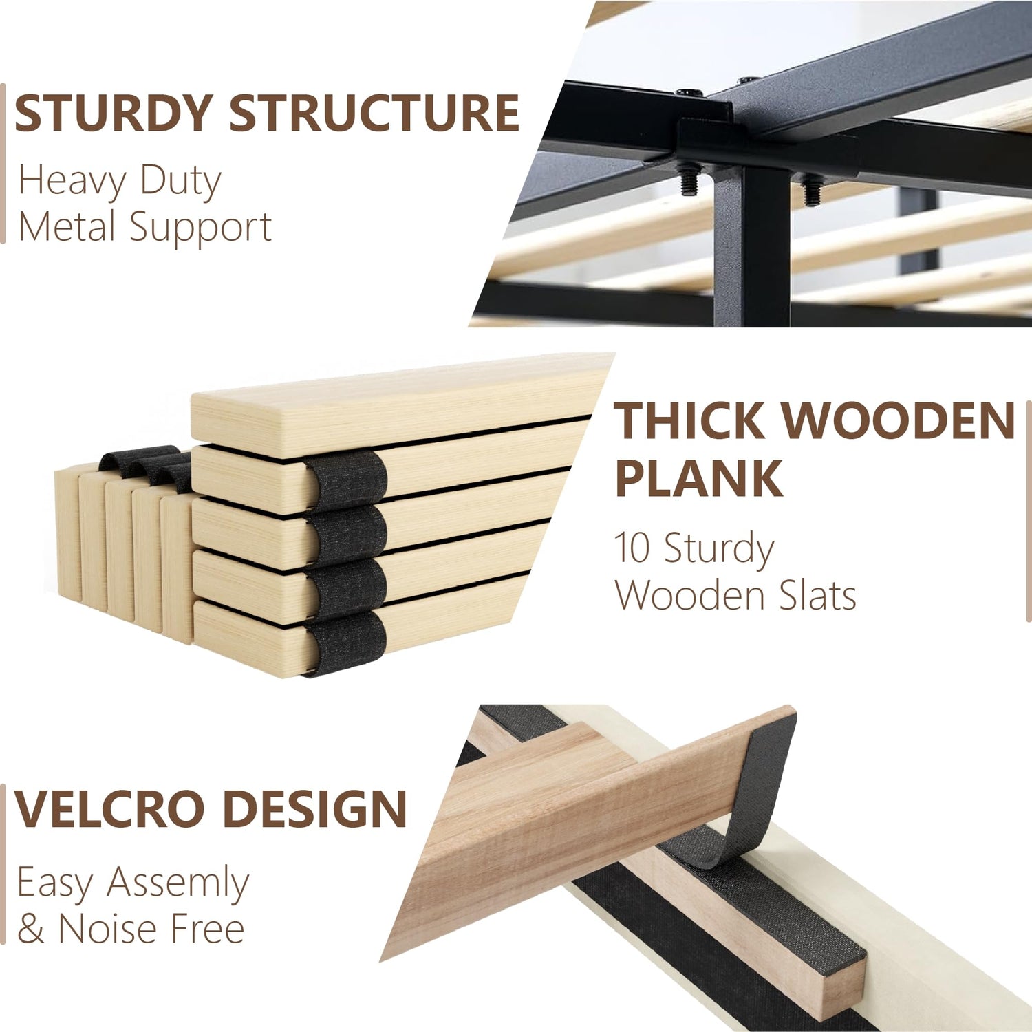 - No Box Spring Needed: Durable velcro wooden slats support and prolong the life of your mattress, whether it's latex, memory foam, or spring. Recommended mattress thickness is 8 to 12 inches.