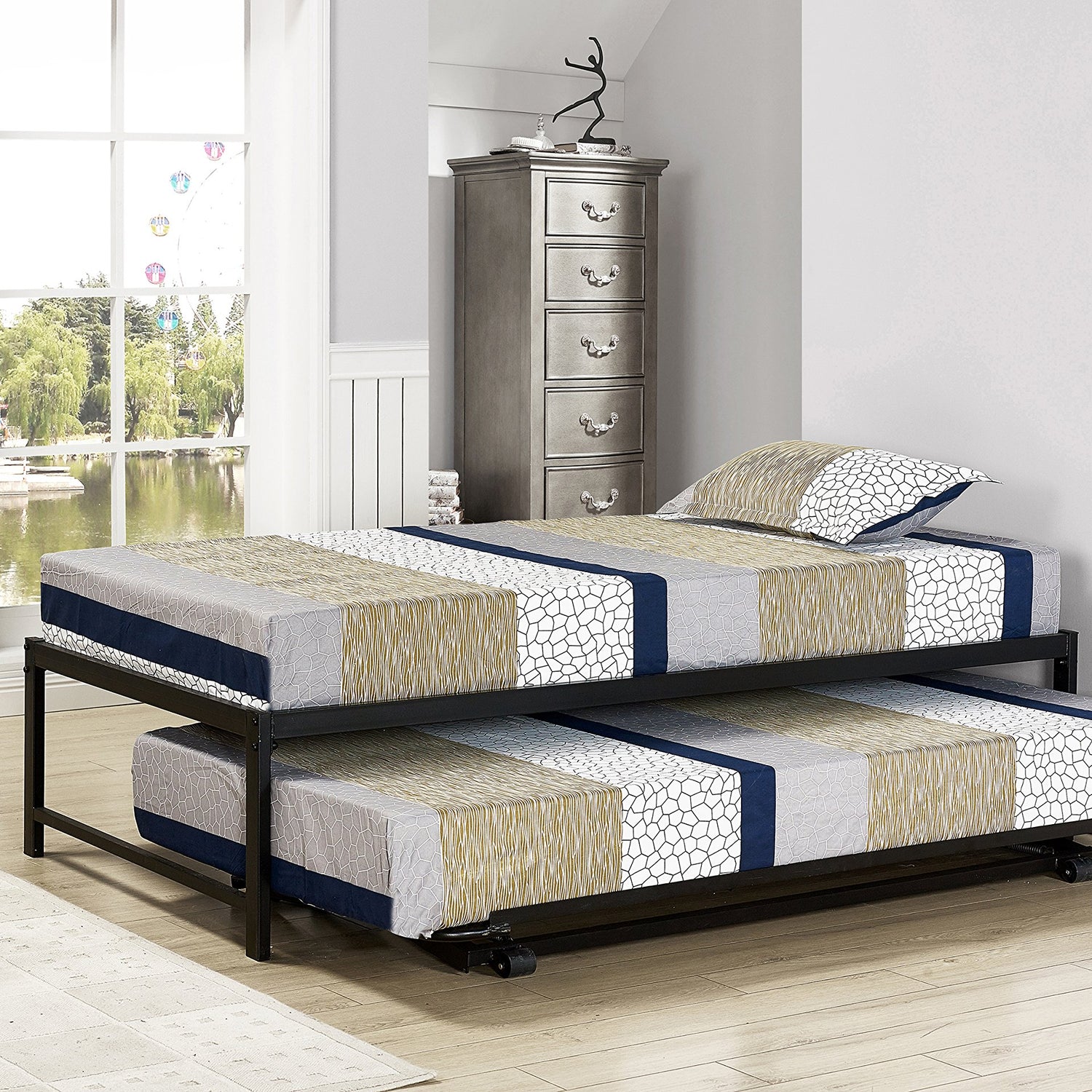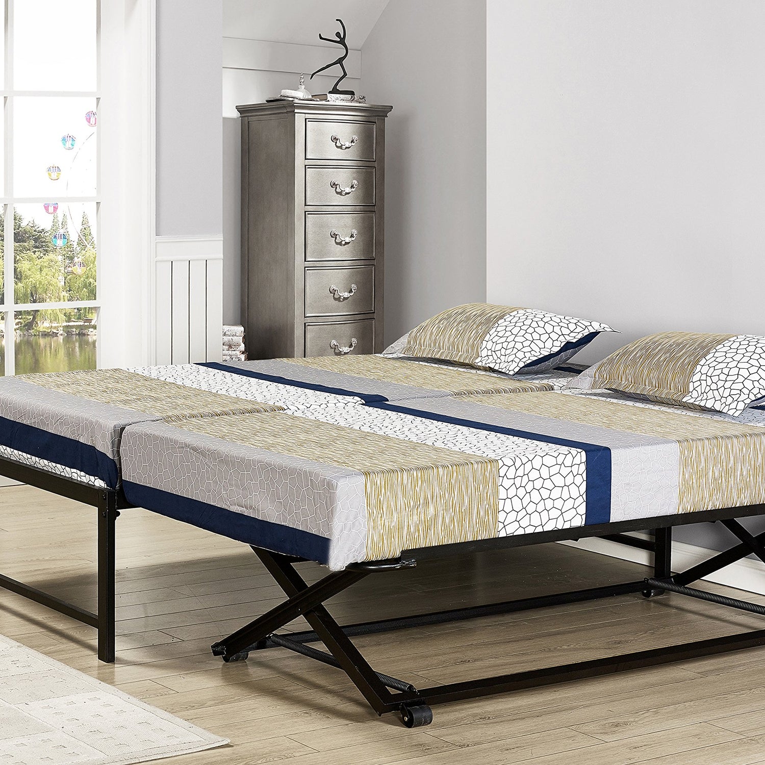 • Kings Brand Furniture Twin Size Black Metal Platform Bed With Pop Up Trundle.