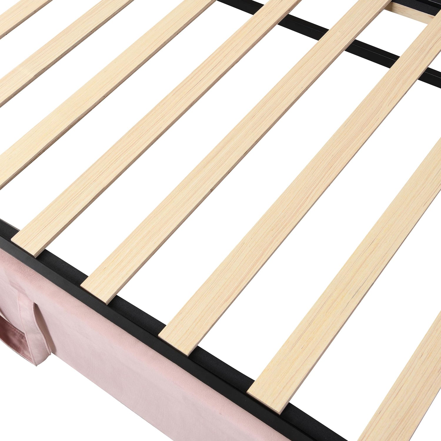 - [Elegant design] Upholstered in carefully-selected velvet, in elegant gray/beige/pink, featured with backrest and two armrests, this daybed not only suits any home décor, but is timeless in its design. The soft backrest and armrests creates coziness, while the single color of the design creates versatility.