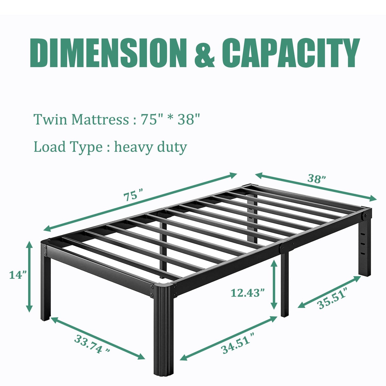 - Heavy Duty: Our metal twin bed frame is made of high-quality iron material, providing excellent load-bearing capacity and durability to support both the mattress and the sleeper