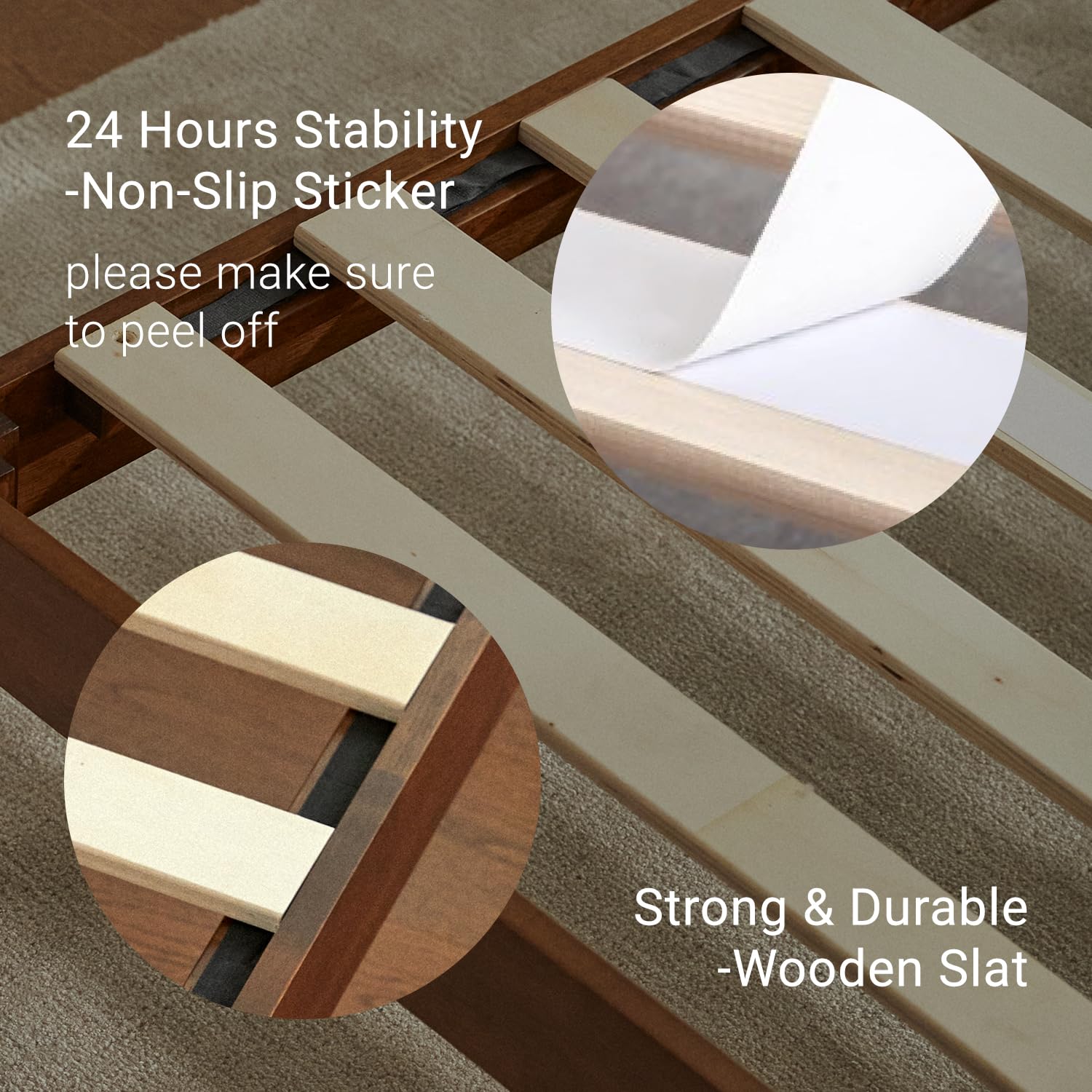 - No Box Spring Needed: Strong slat system supports all mattress types directly.