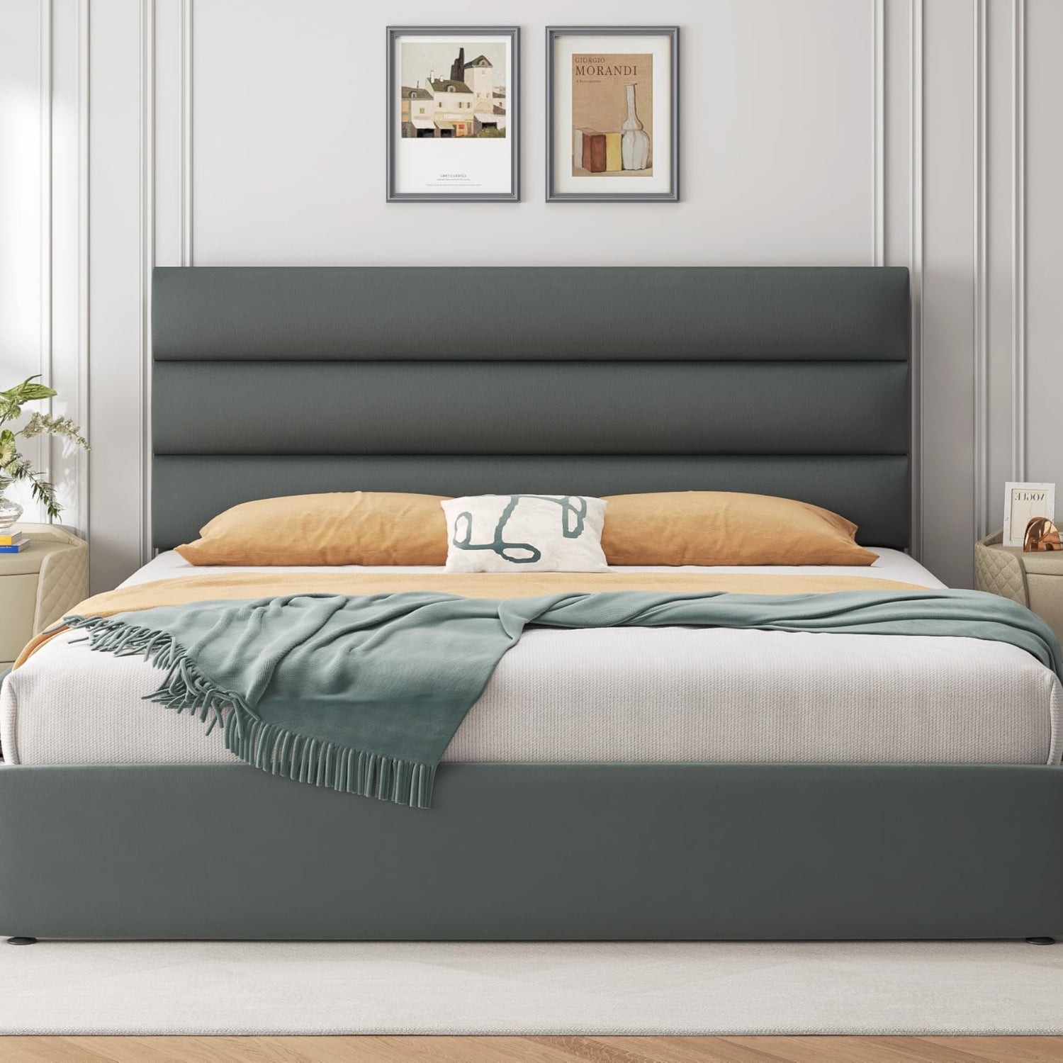 - 【Queen Size Storage Bed Frame with Luxury Velvet Headboard】 This Lifezone queen bed frame with headboard comes with a soft upholstered headboard that is 18 inches wide and the total height of the upholstered headboard is 39.3 inches, which meets the needs of the vast majority of people. The headboard of this queen bed frame with storage is upholstered in the same design as the body of the queen size bed frame with storage, and the fabric is made of soft and comfortable velvet with highly resilient foam that makes leaning on it a pleasure. The three-panel moulding also adds to the design of this bed frame queen size with storage