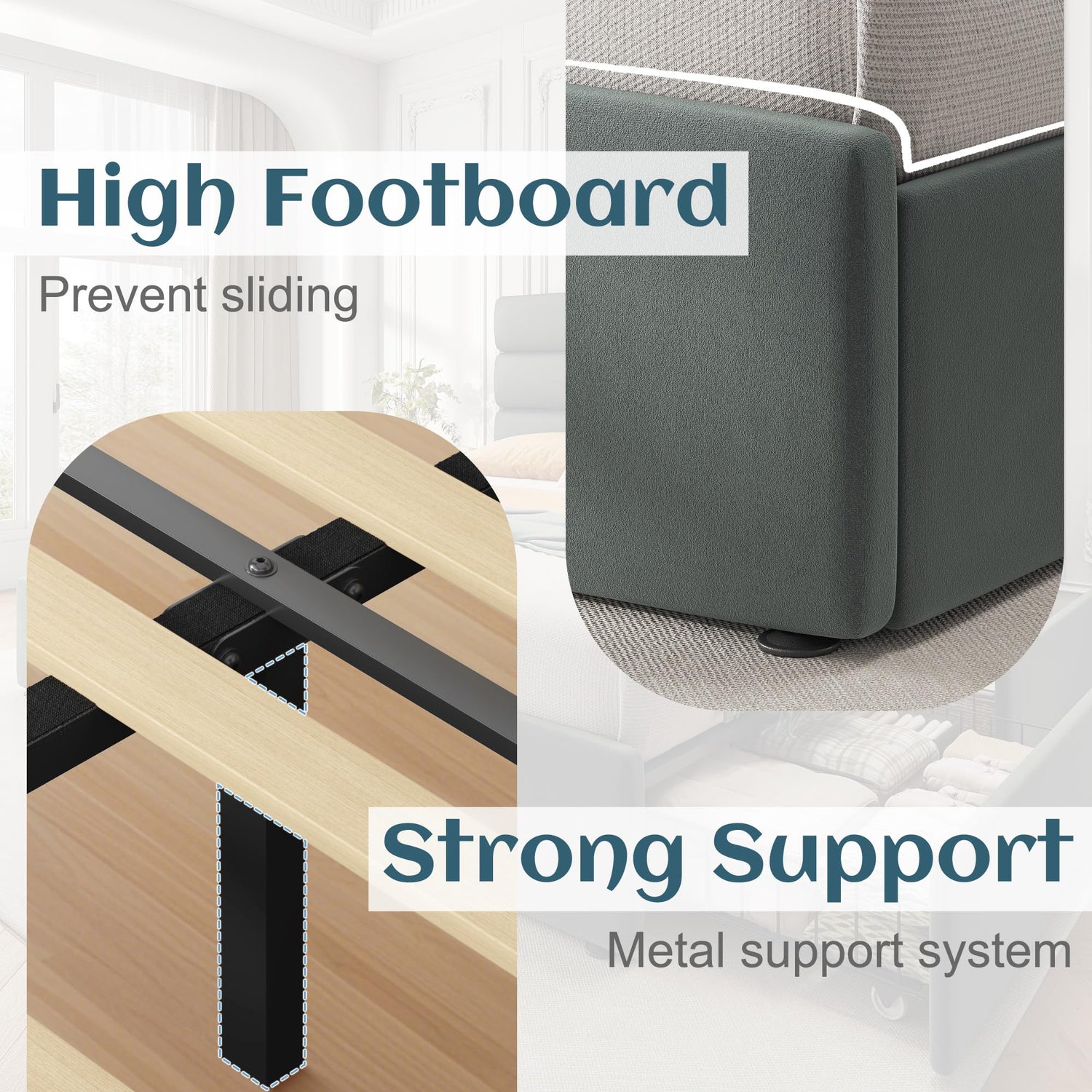 Lifezone Queen Bed Frame with Storage Drawers, Queen Size Platform Bed Frame with Velvet Upholstered Headboard, Metal Support, No Box Spring Needed, Noise-Free, Easy Assembly, Bedroom Furniture, Grey