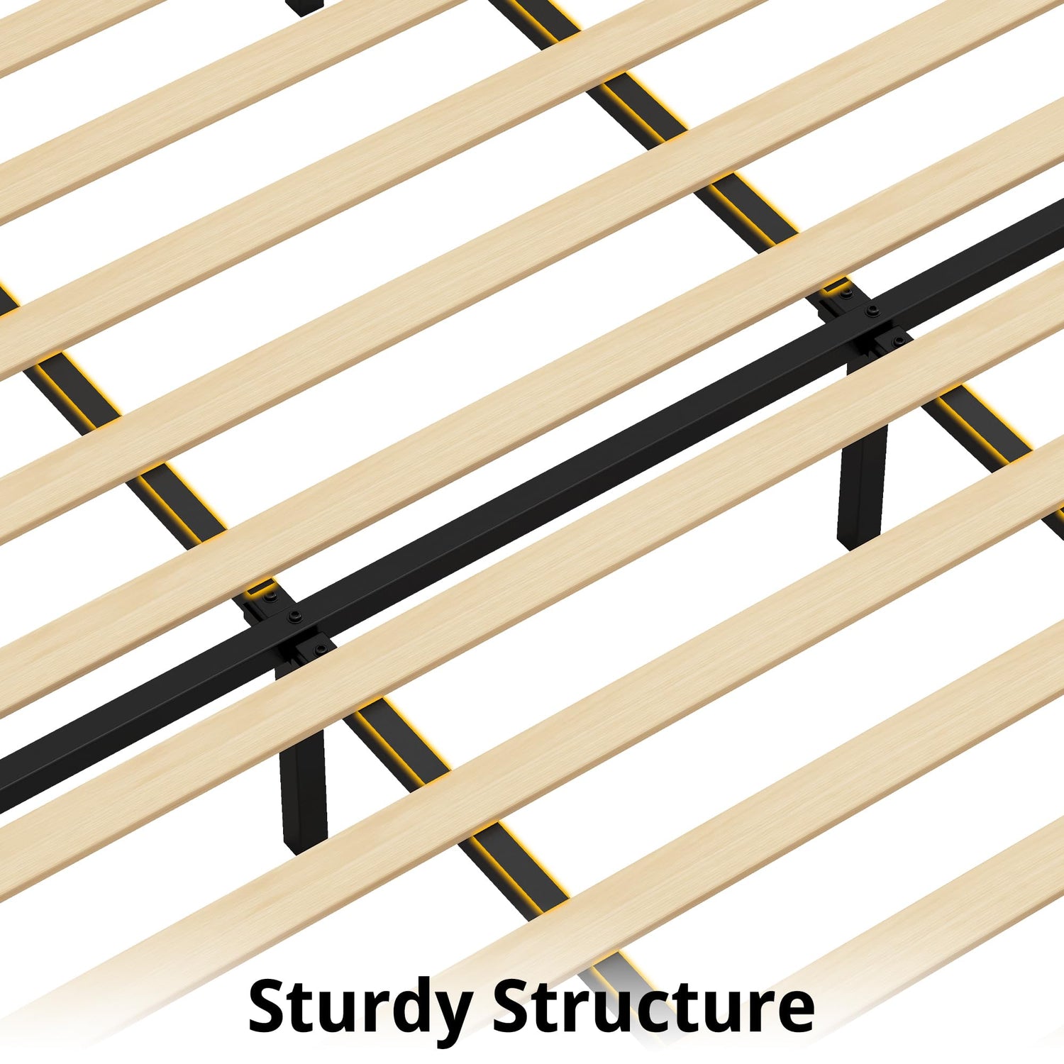 Durability and quietude are paramount in the construction of this king-size bed frame. Built with high-duty hidden support legs and robust wooden slats, it supports up to 800 pounds while the thoughtfully designed silent strips ensure that your sleep is as peaceful as it is restful.
