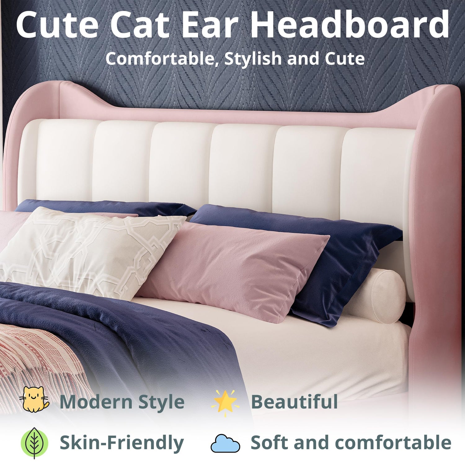 The adorable cat ear headboard is crafted from soft, skin-friendly material, ensuring that it’s not just a feast for the eyes but a pleasure to touch, adding a sense of warmth and joy to your space.