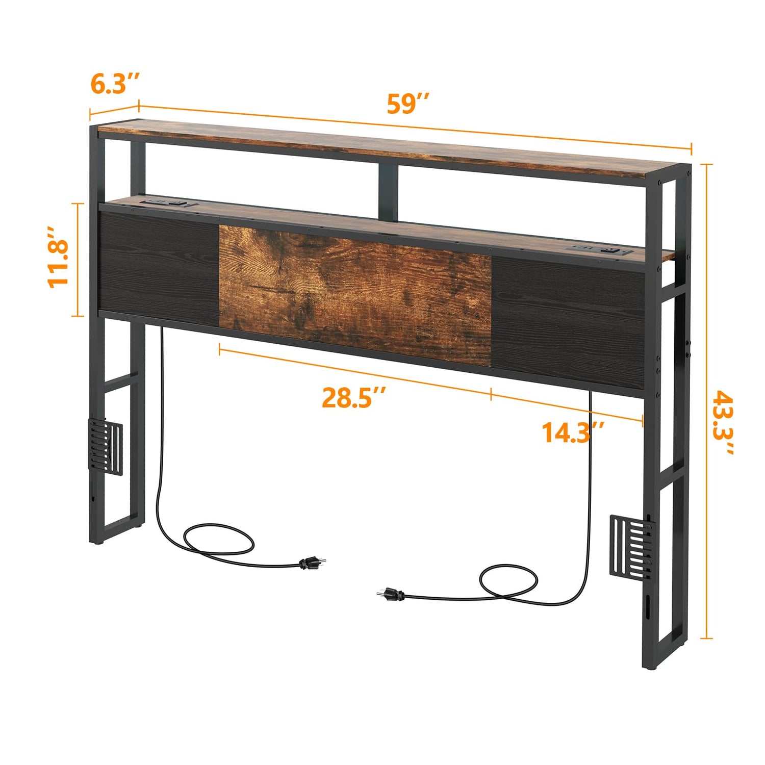 The thoughtful design includes two-tier storage shelves that provide ample space for your personal belongings. Measuring 59"L x 6.3"W, these shelves are perfect for holding your cell phone, alarm clock, books, and other essentials, keeping your room tidy and clutter-free.