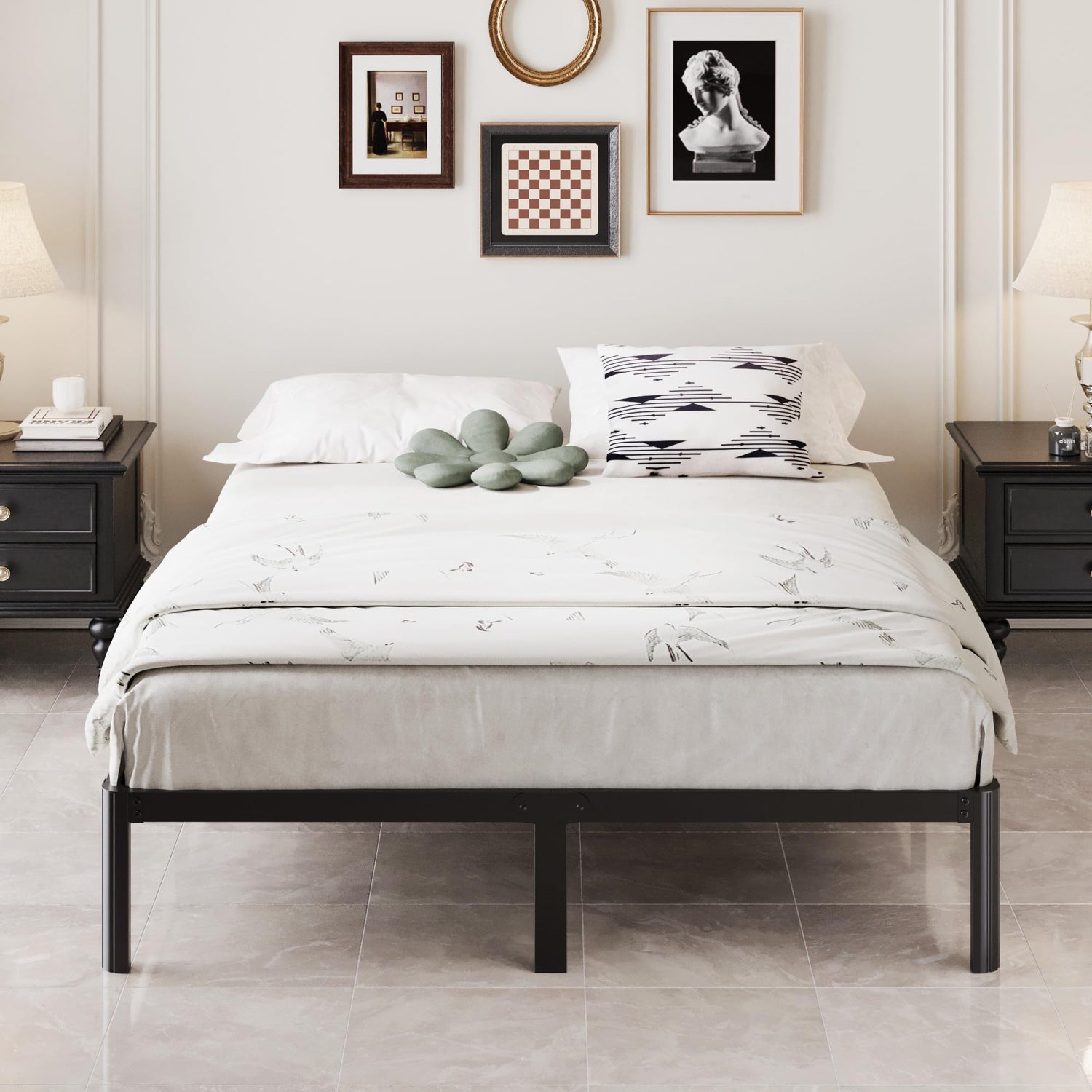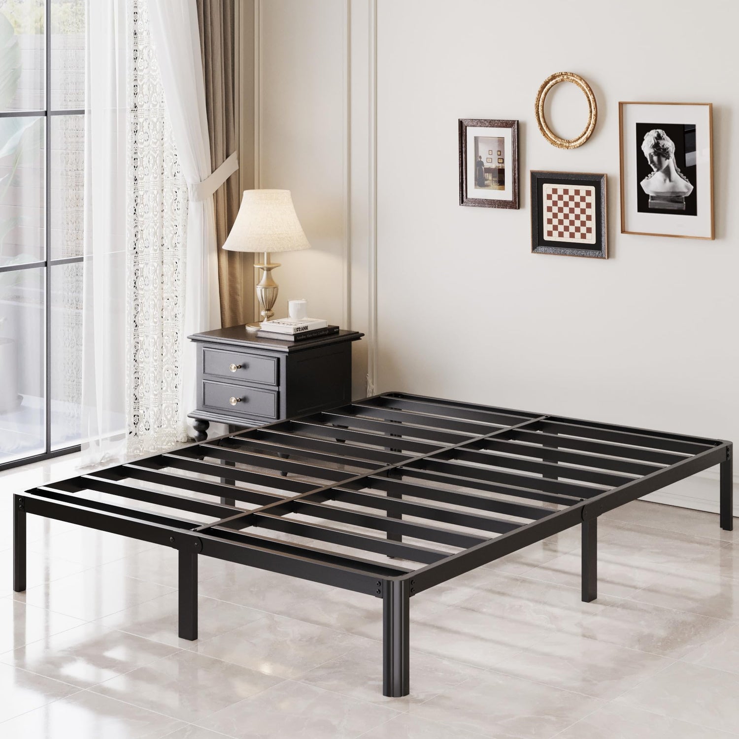 - Easy to assemble metal queen bed frame, included all installation parts and hardwares.