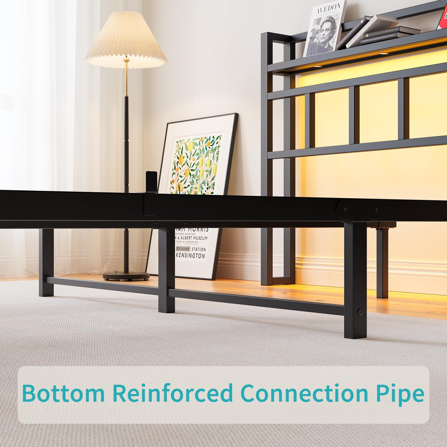 - 【Headboard Storage Shelves with Charging Station:】The black full size bed frame features convenient headboard shelves and charging station,which is easily charge your tablet, phone, or other gadgets and offering easy access to essentials and extra space to showcase your favorite decor, such as phones, glasses, and books within easy reach.